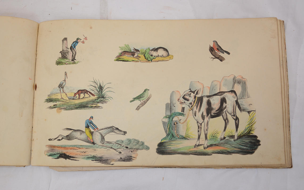 Uddevalla Den 27 September 1837. cirka 80 avbildningar på 40 blad, delvis kolorerade efter förlagor. djur växter, vuer. mm.