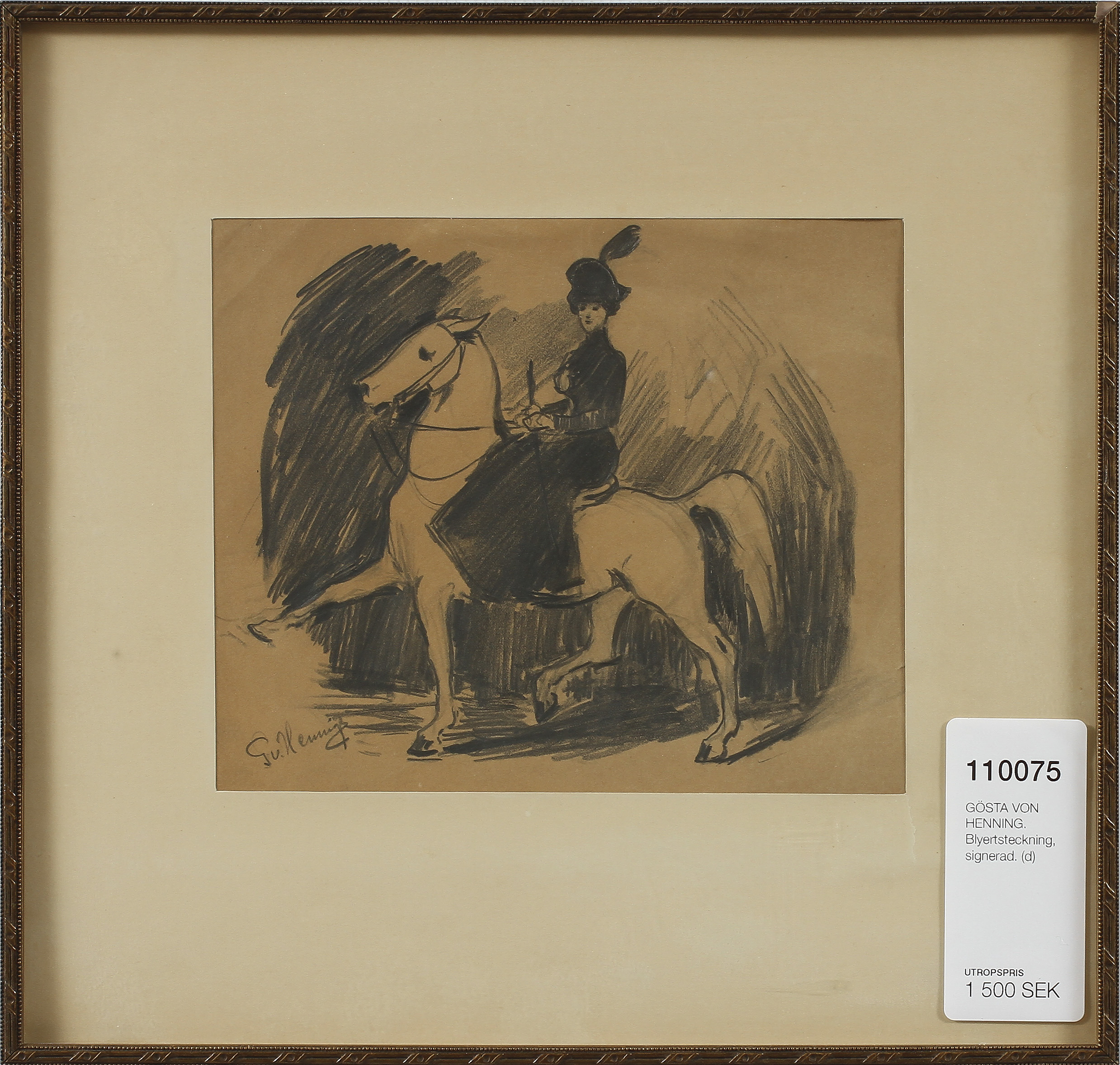 110075. GÖSTA VON HENNING. Blyertsteckning, signerad.