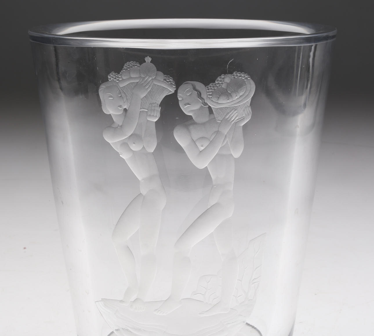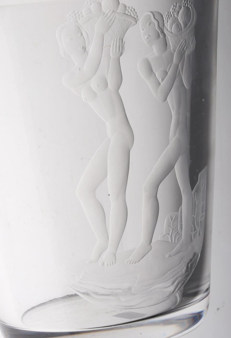 Graverad dekor kvinnor bärandes på fruktkorgar, höjd ca. 20 cm.
