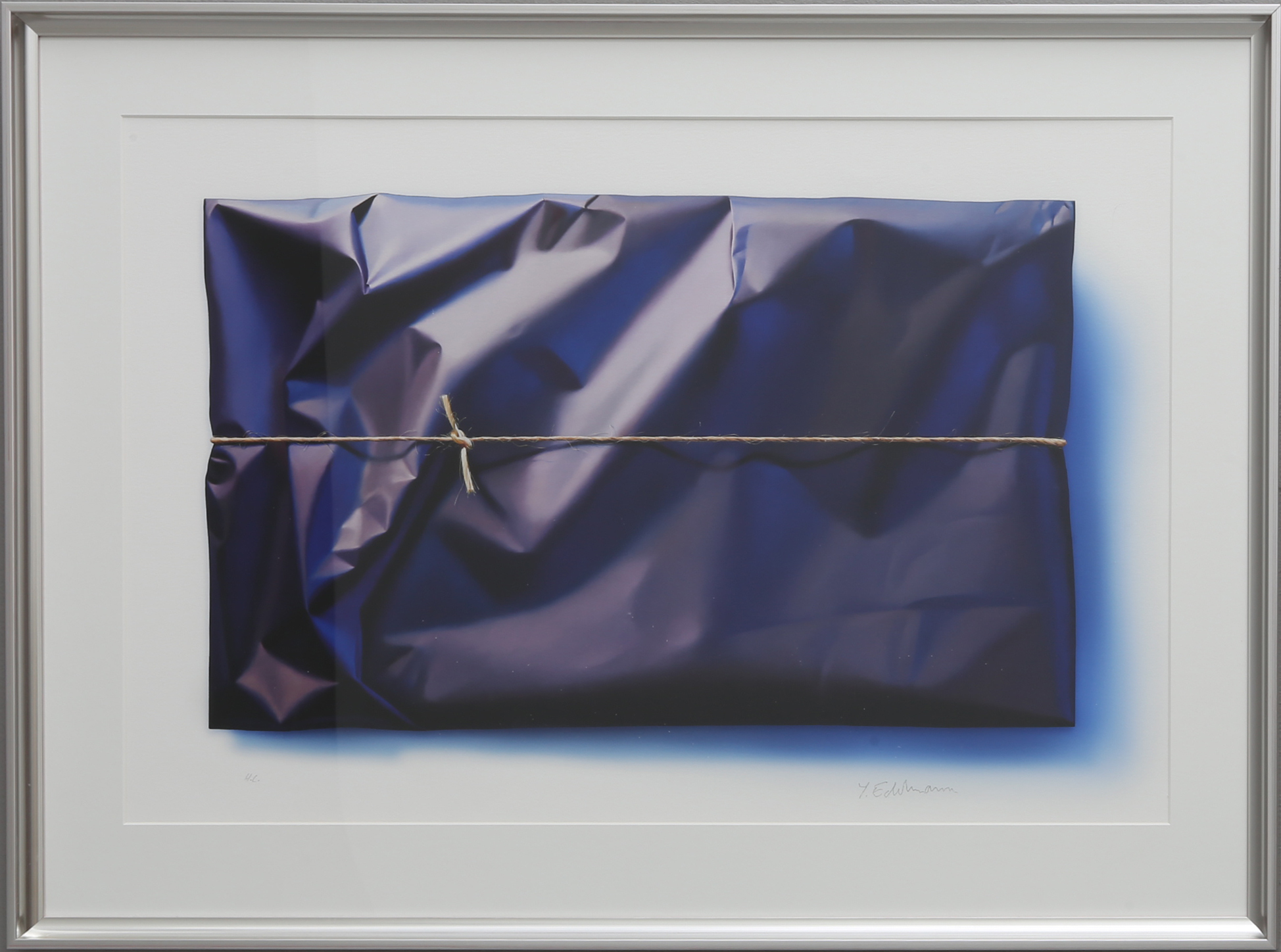 1106226. YRJÖ EDELMANN. paket med blått papper och snöre.