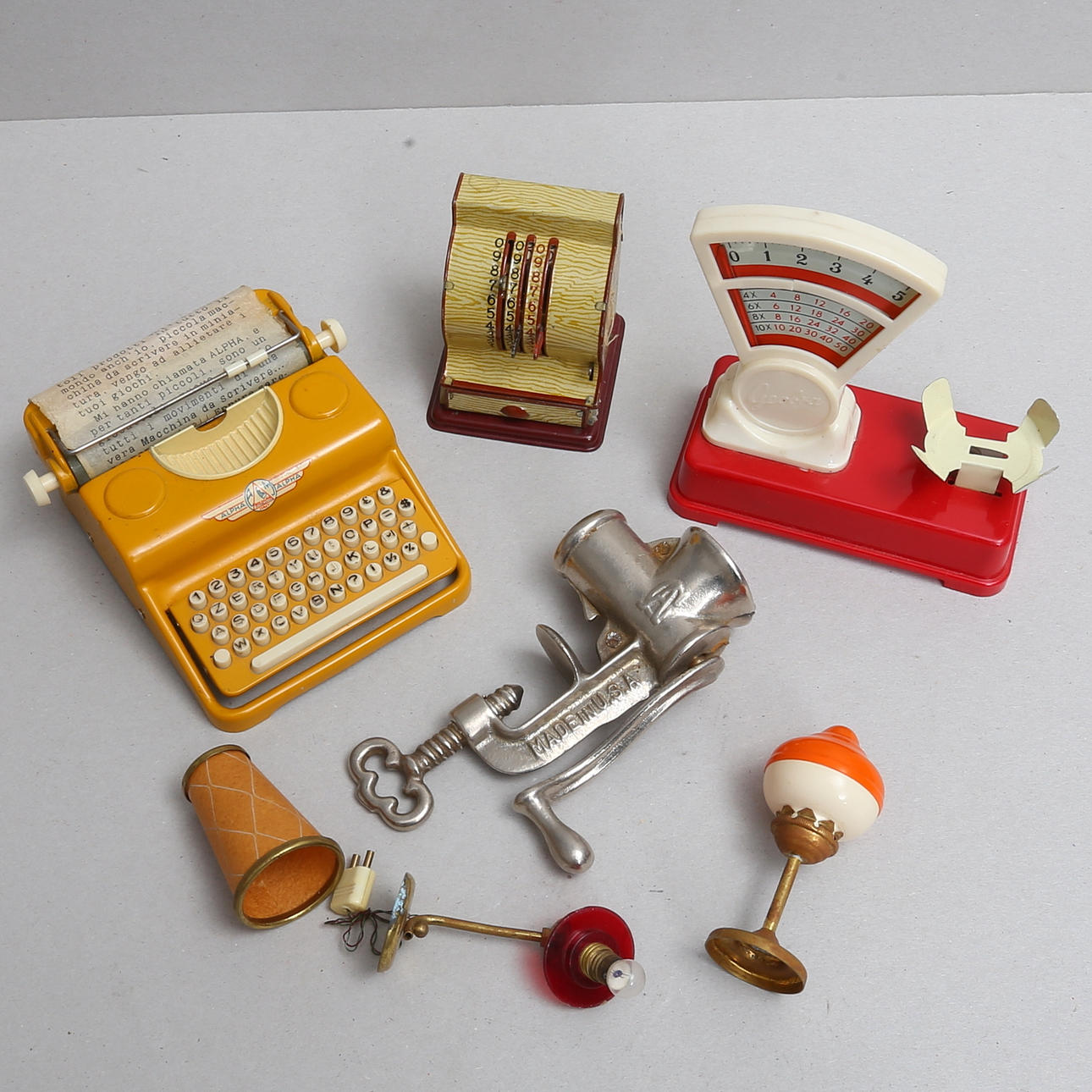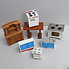 Bestående bland annat miniatyrer i form av skrivmaskin, våg, kassaapparat, möbler samt kopparföremål.