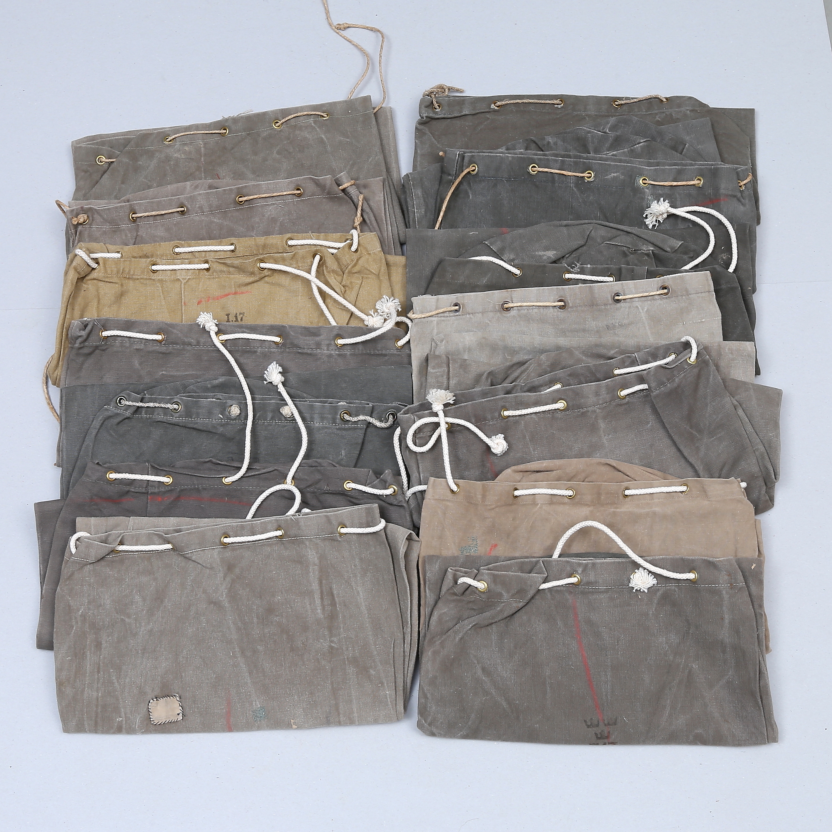 1109115. SJÖMANSSÄCKAR, 13 st, kanvastyg.