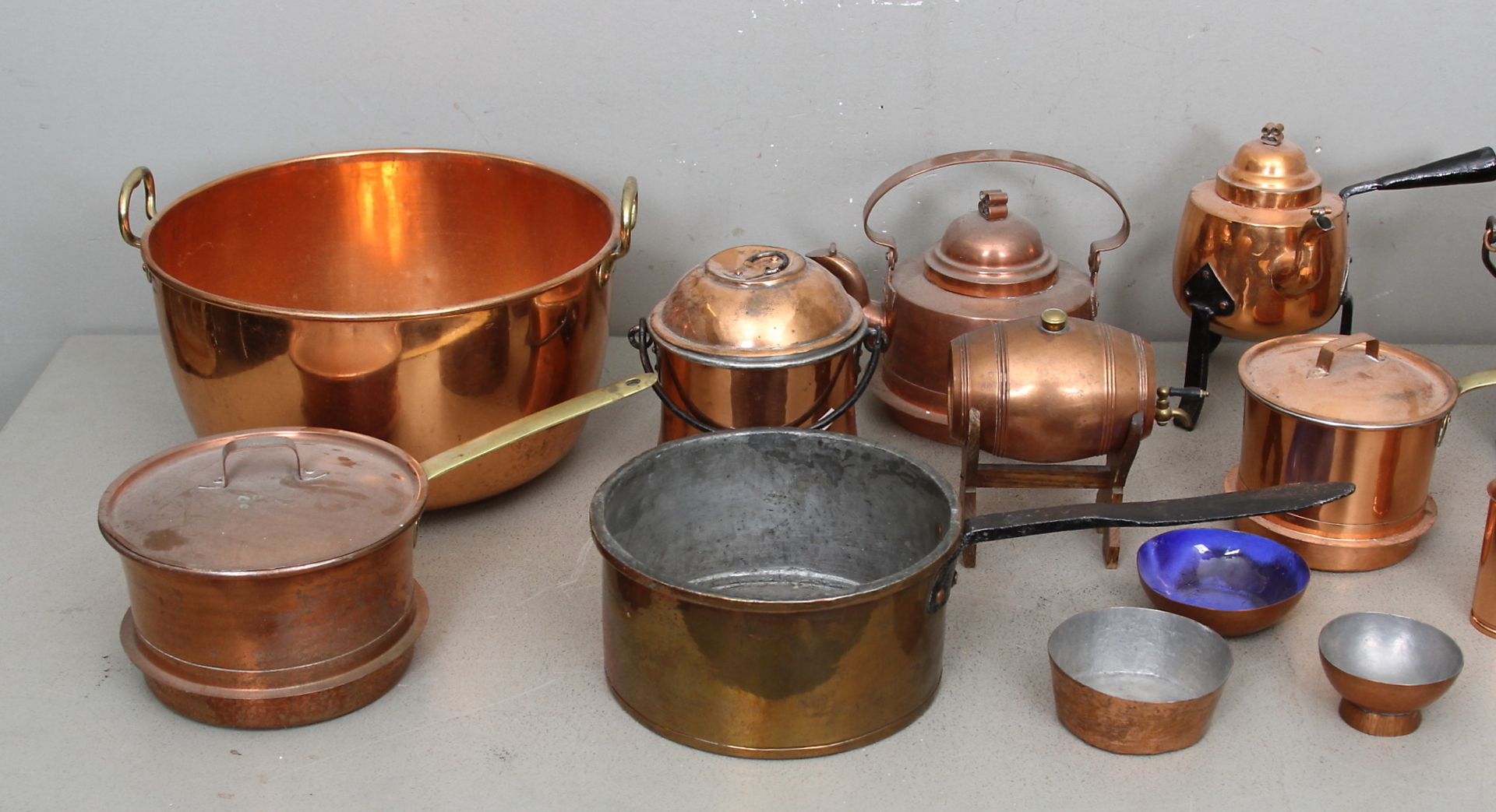 110982. KOPPARFÖREMÅL, 15 st, 1800 respektive 1900-tal.