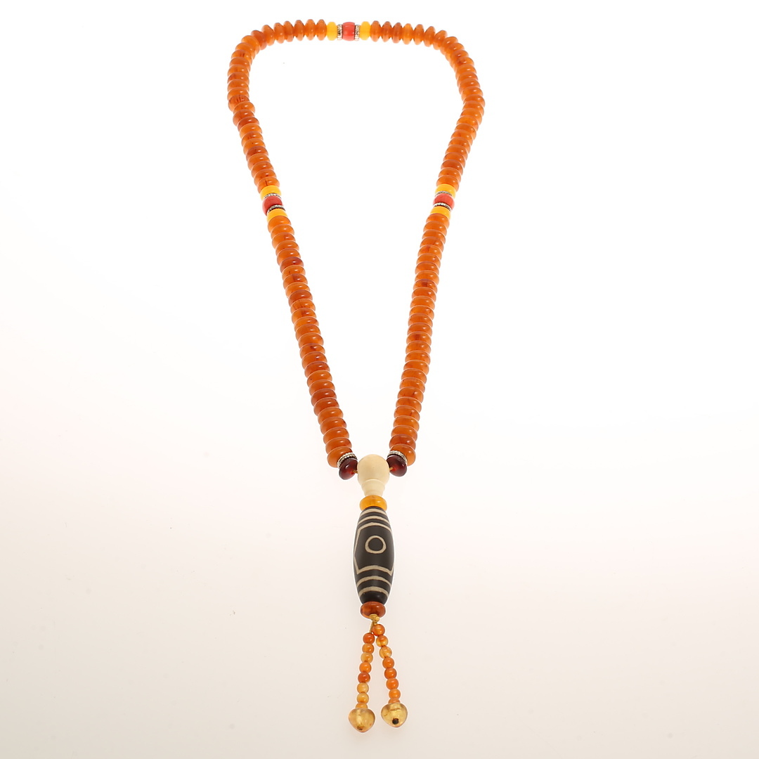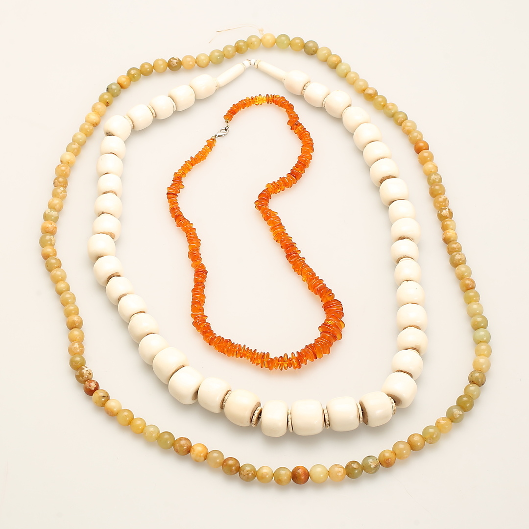1110525. COLLIER, 4 stycken, jade, bärnsten, plast, ben.