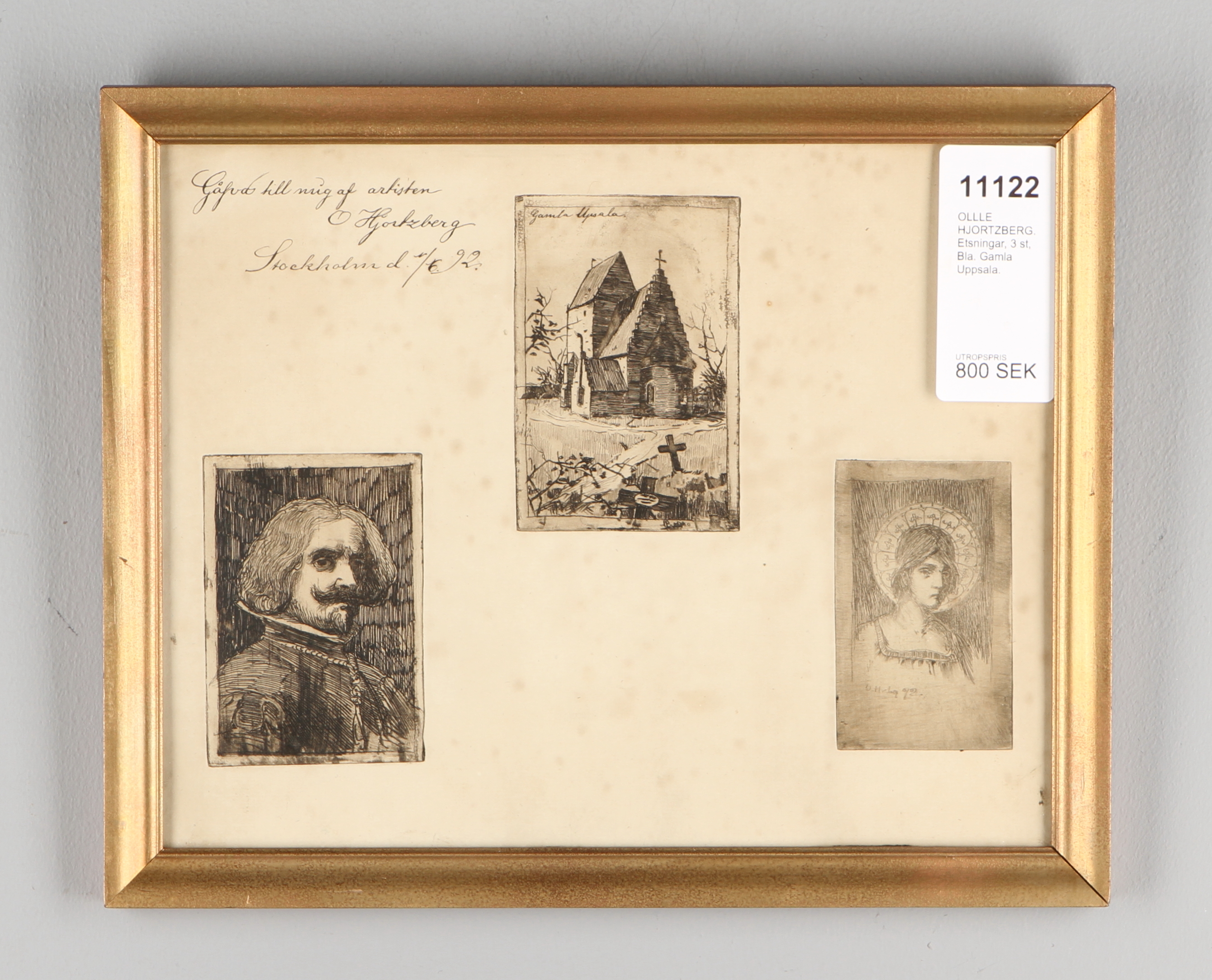11122. OLLLE HJORTZBERG. Etsningar, 3 st, Bla. Gamla Uppsala.