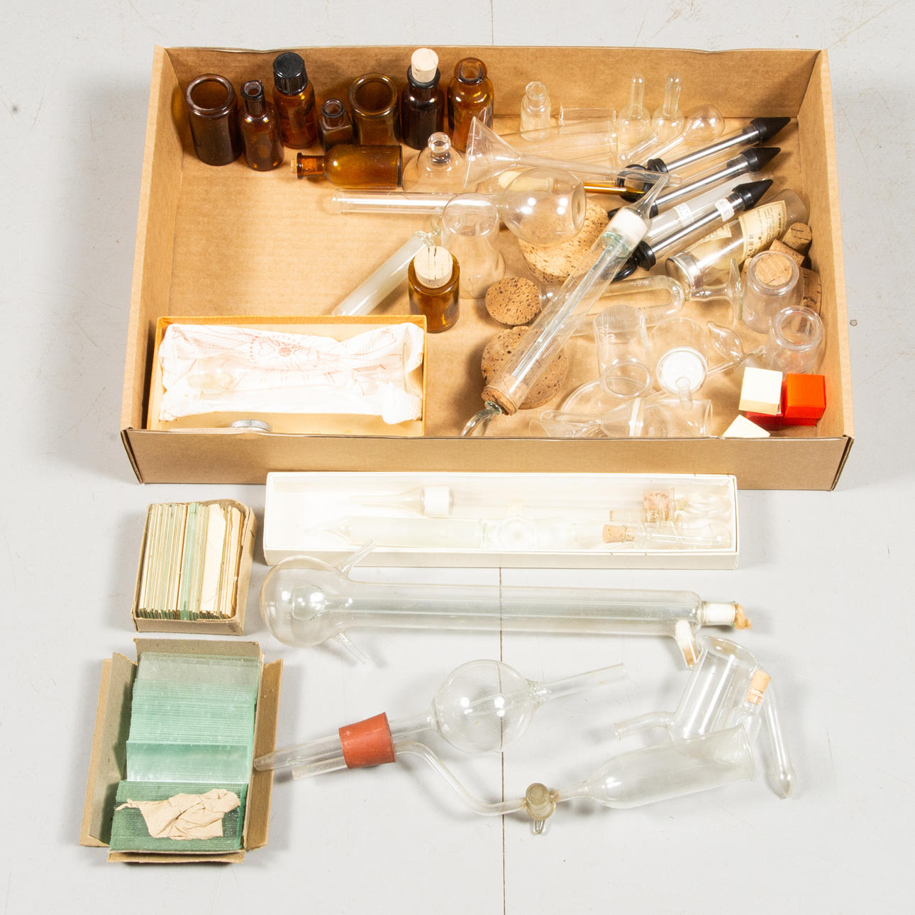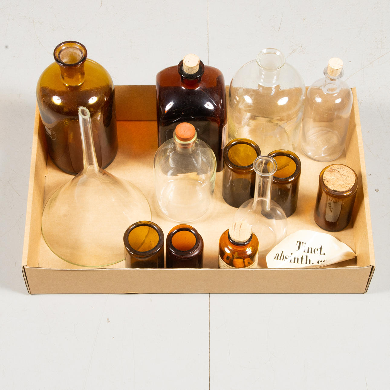 APOTEKSFALSKOR SAMT KEMIUTRUSTNING, glas/metall.