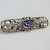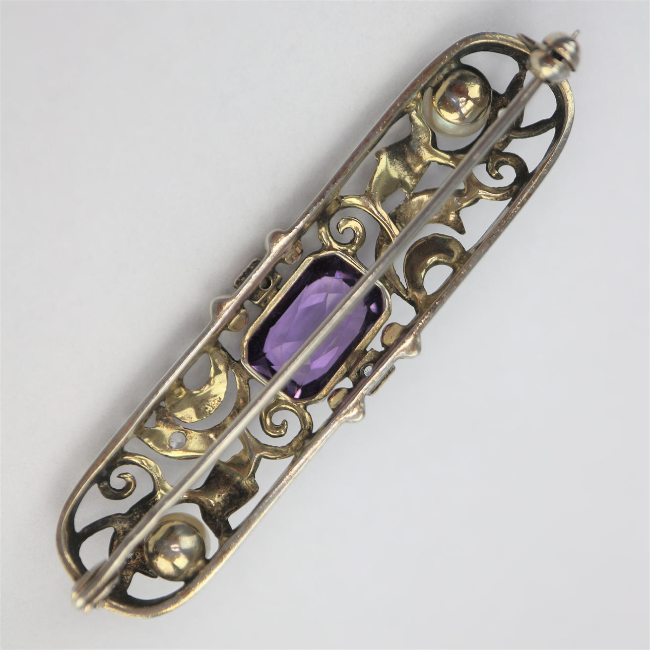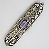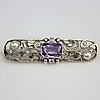 Art deco silverbrosch, bicolor, 935 silver, signerad Ln, med ametister, två sötvattenspärlor, 6 sex diamanter, mått: 6 cm.