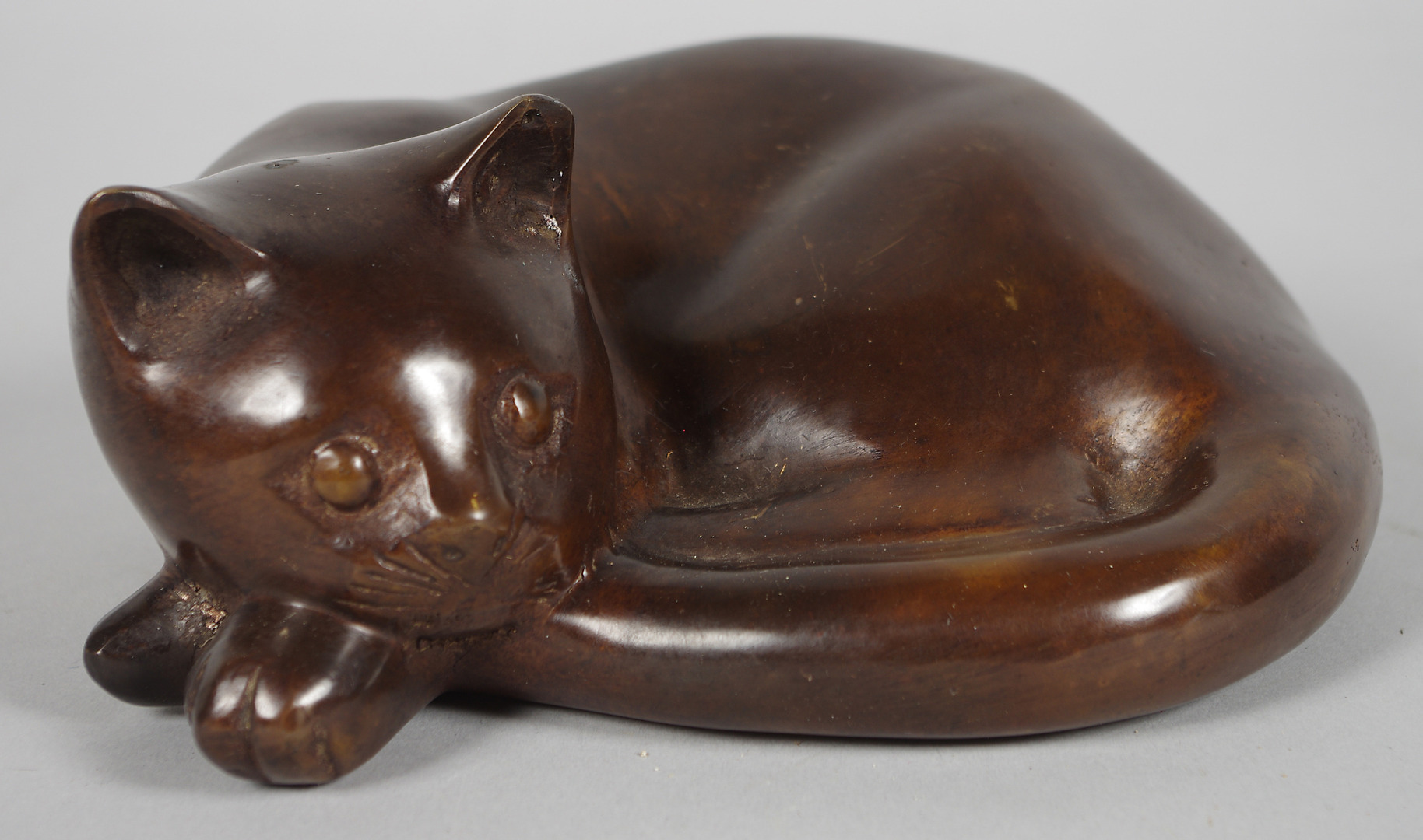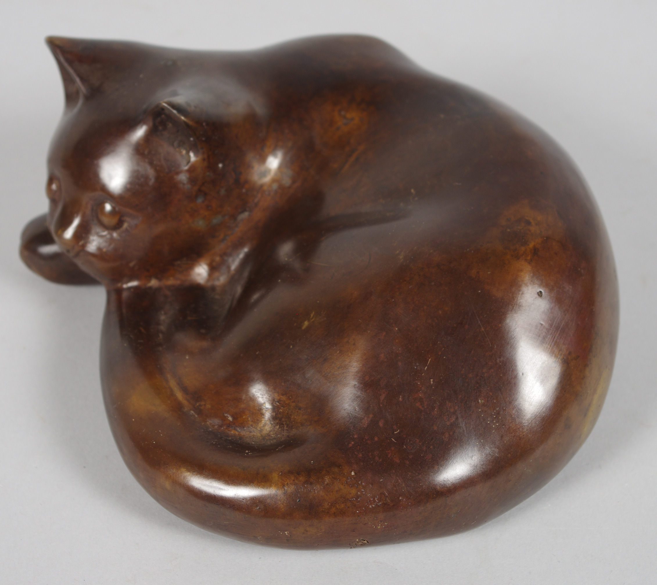 111628. BRONSSKULPTUR, liggande katt, samtida.