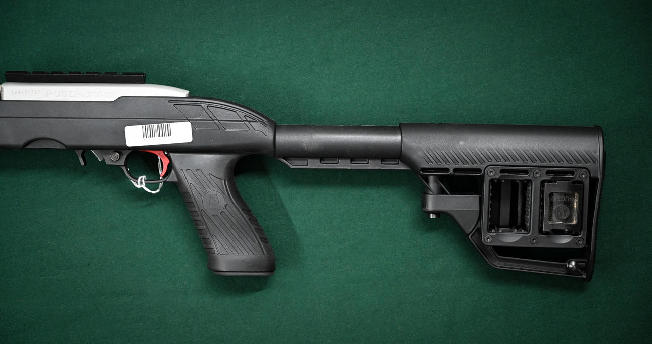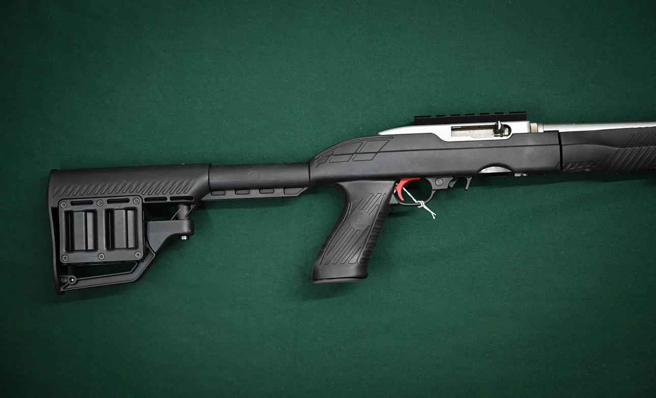 Picatinnyskena monterad, adaptive tactical RM4 kolv monterad, röd avtryckare, två magasin medföljer, pipa gängad.