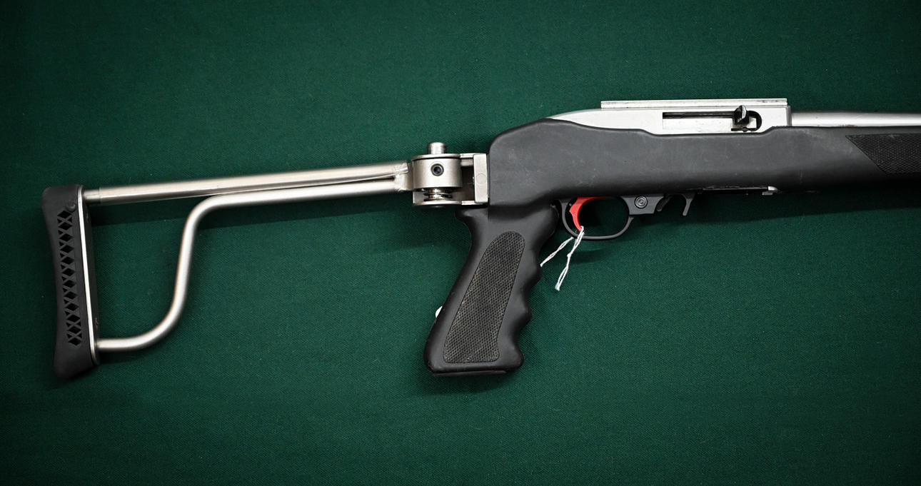 Gängad pipa, vikbar kolv, röd avtryckare.