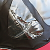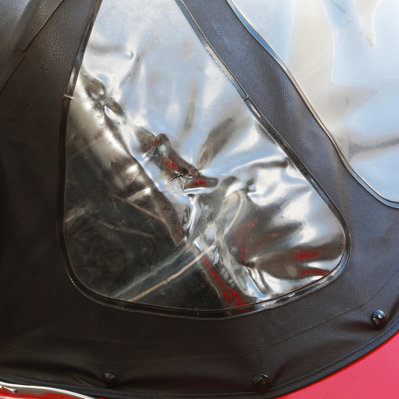 Hål i plastfönstret på cabben.