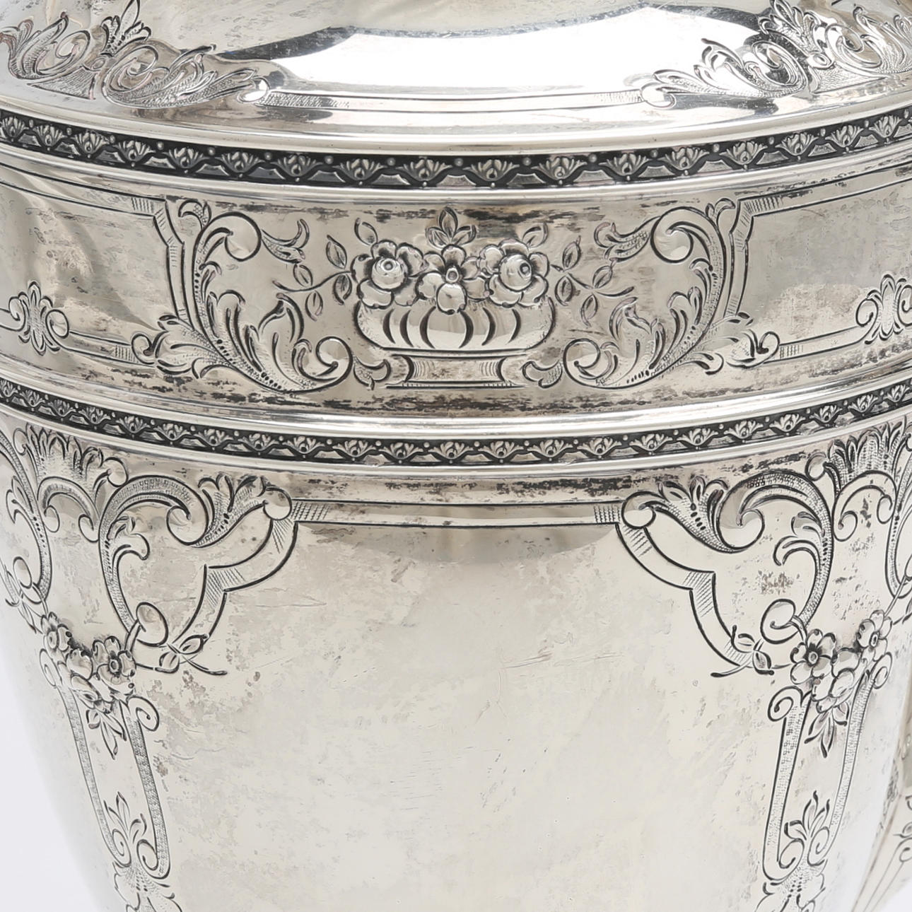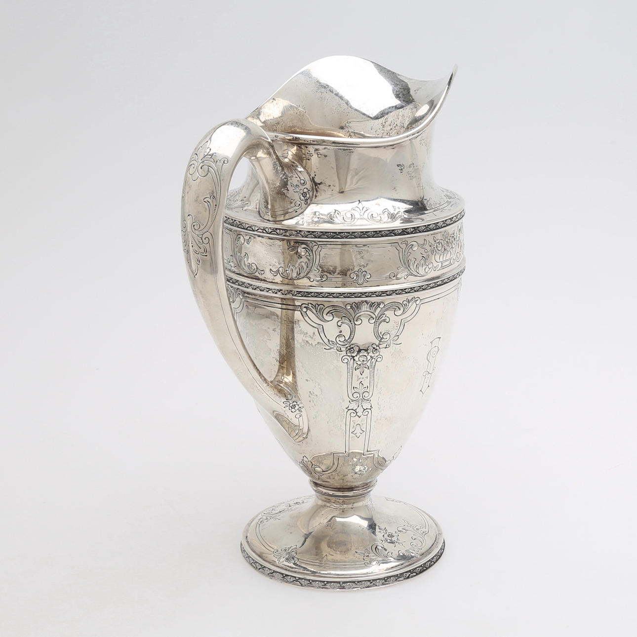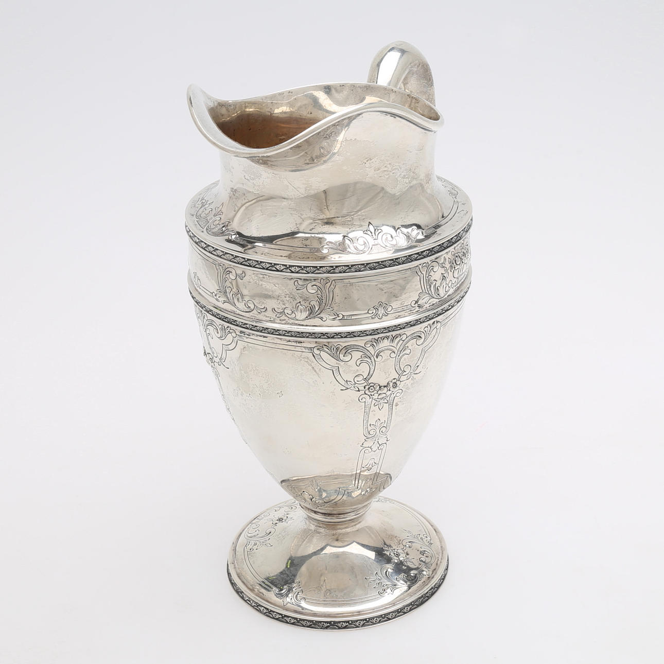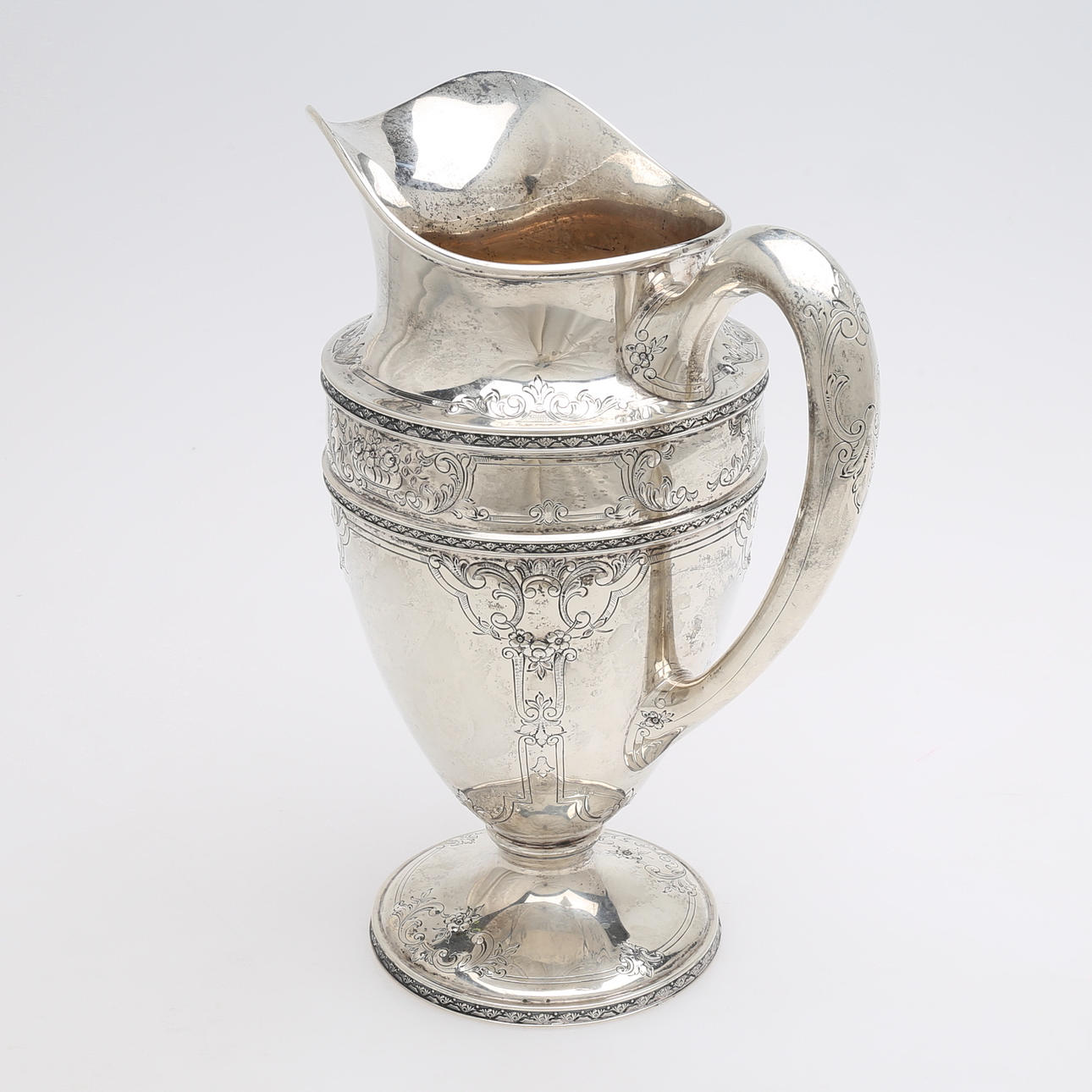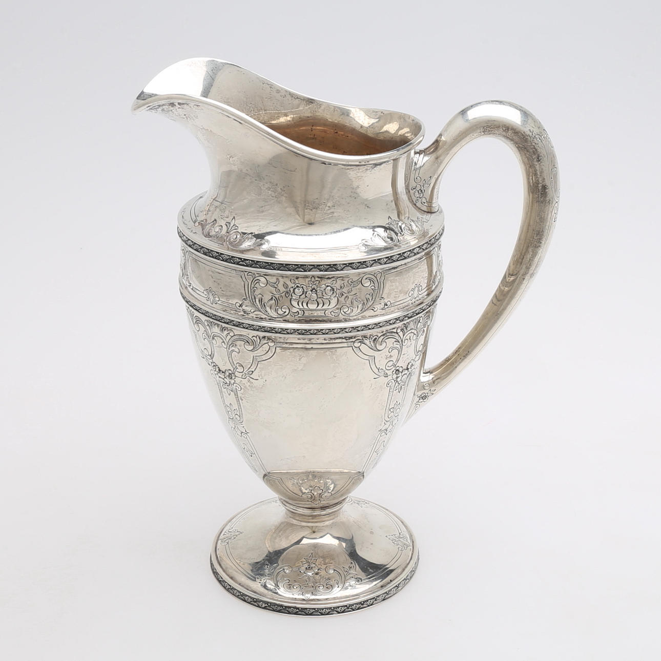 Stämplad "Berry & Co", samt "international sterling 2700/2 5 pints" höjd 29 cm, vikt: 1046 gram.