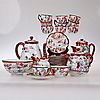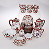 10 Koppar ca ø 7 cm, 5 cm hög 12 fat ca ø 13 cm 3 tillbringare, sockerskål, gräddsnipa, skål.