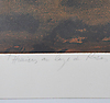 vy över vatten med båtar, signerad, 31x47 cm.