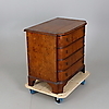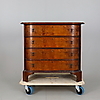 Tidigt 1900-tal, av formad breakfront form med låda uppträdda topp ovanför fyra lådor på höga fäste fötter, 73,5 cm hög, 78 cm bred, 50 cm djup.