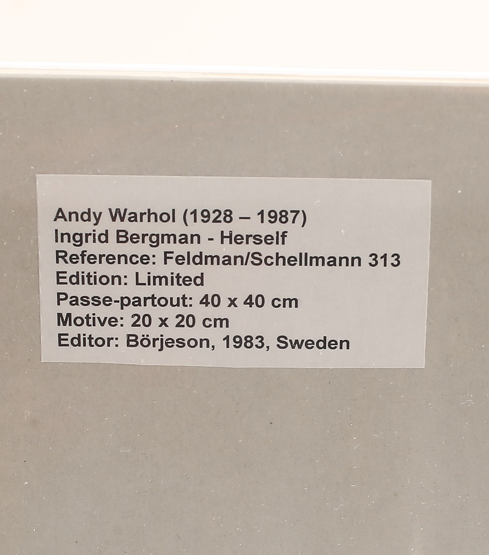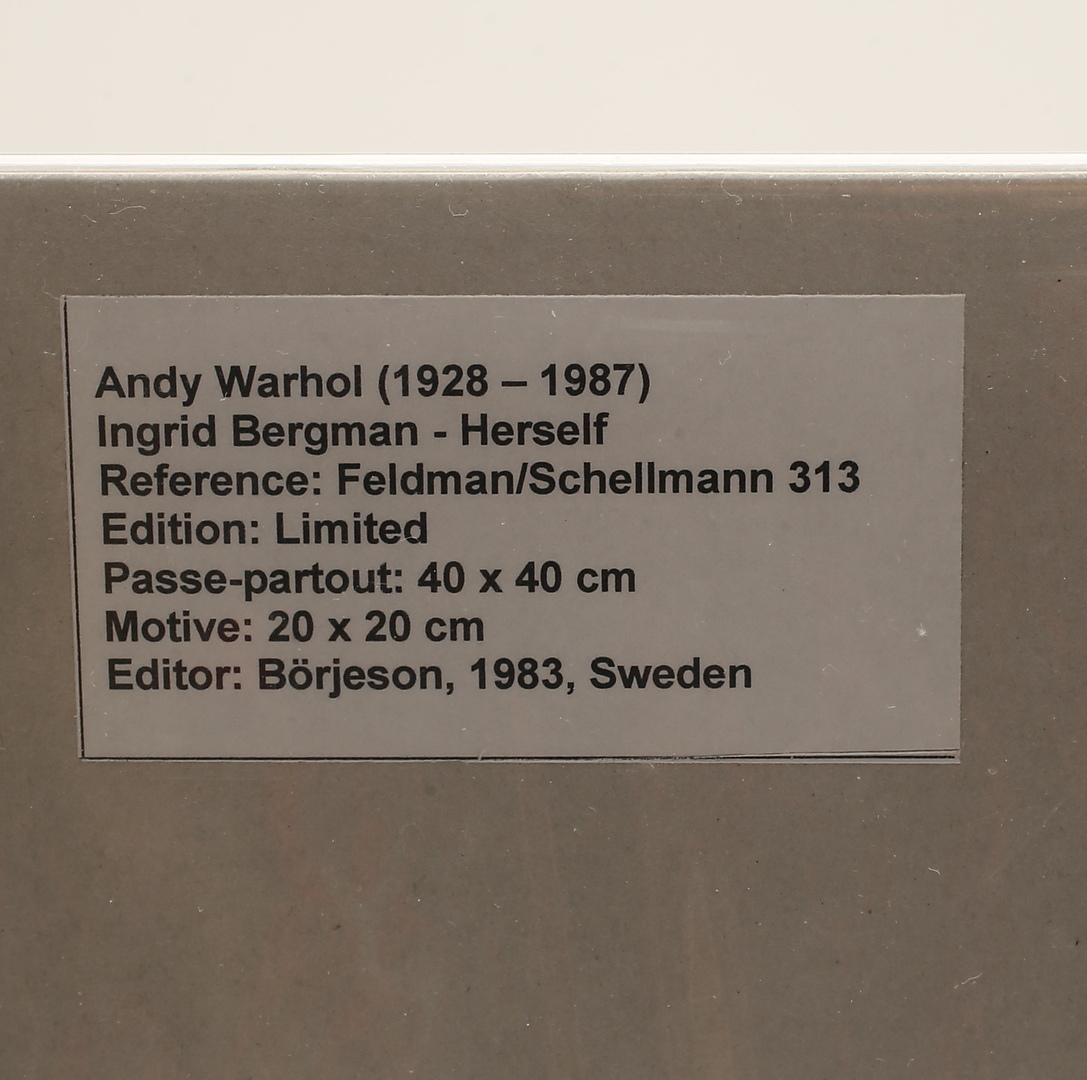 1123954. ANDY WARHOL. 2 stycken, eftyer, Ingrid Bergman-Herself, Edition Börjesson 1983.