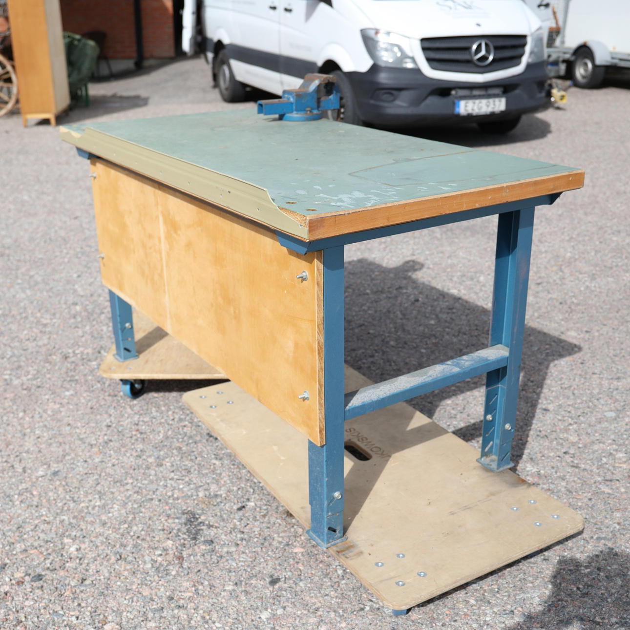 1124354. ARBETSBÄNK, med skruvstäd.