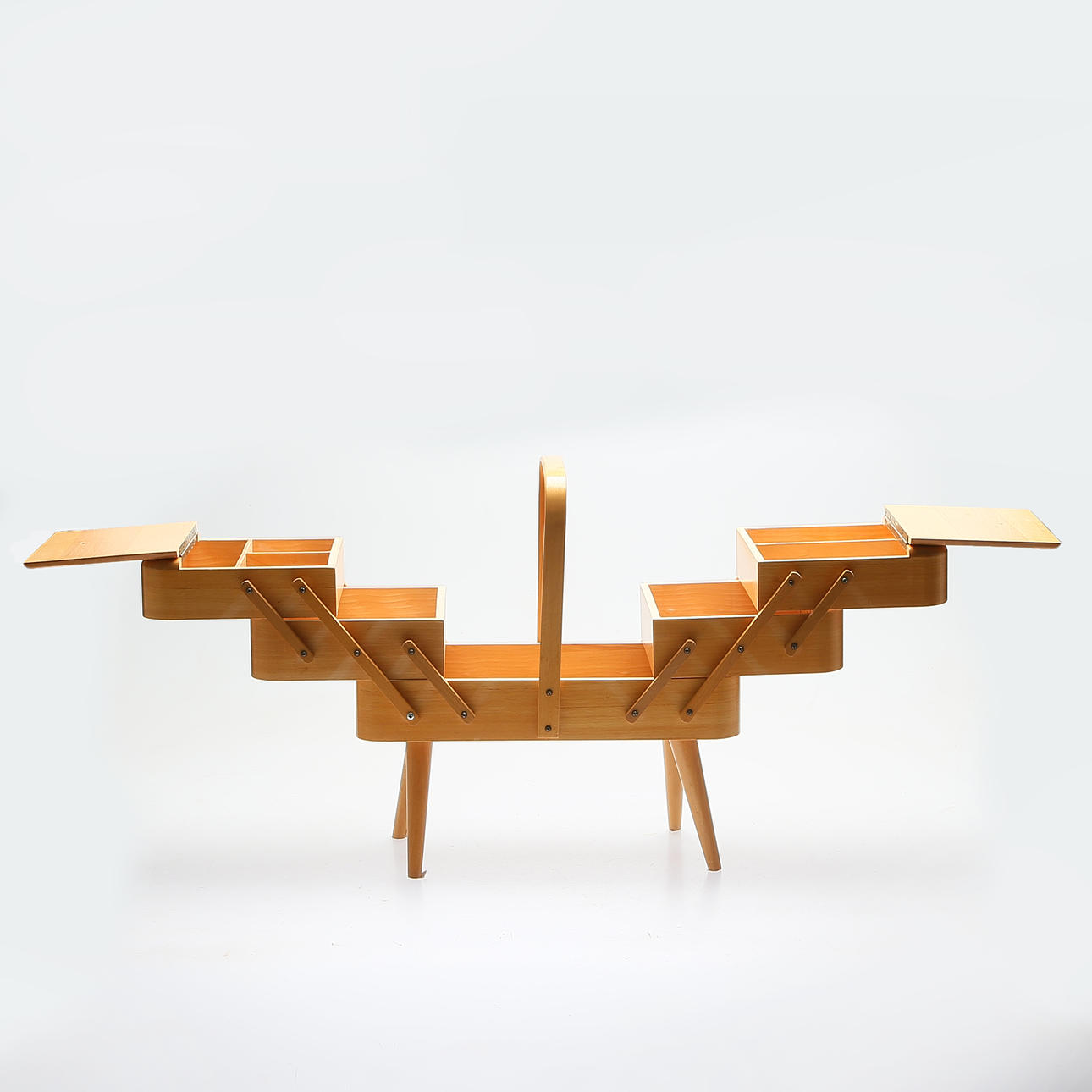 Klassiskt syskrin på ben med utdragbara fack i trä.