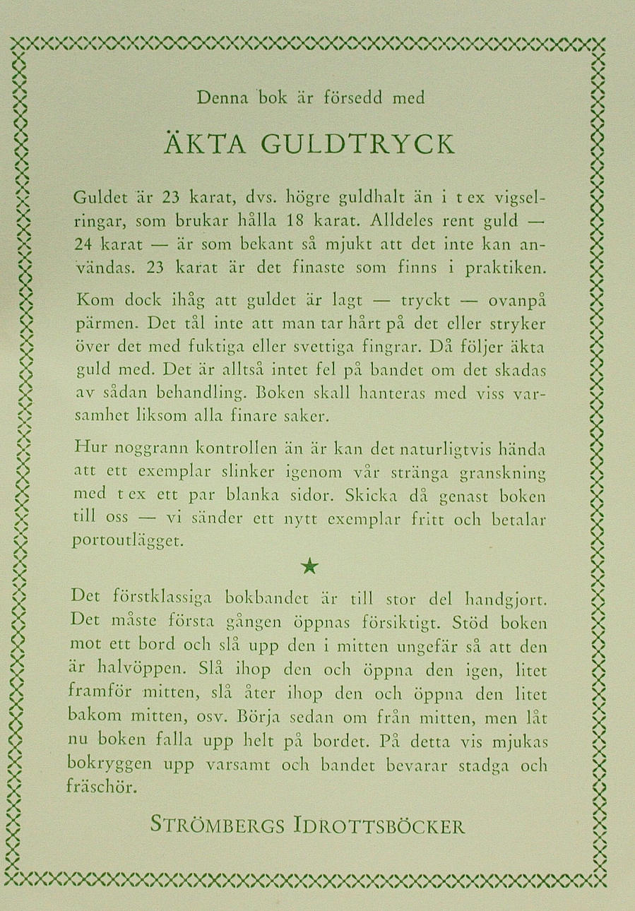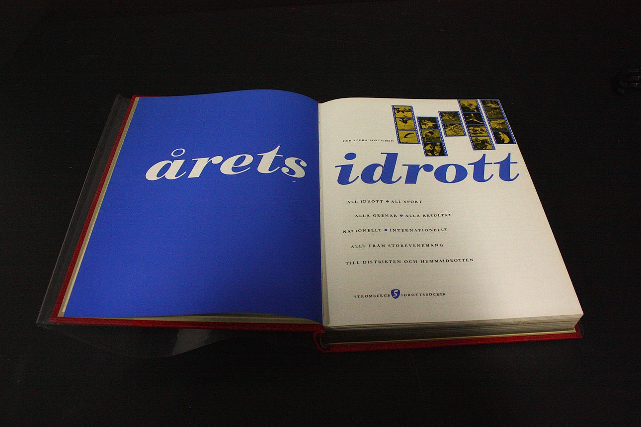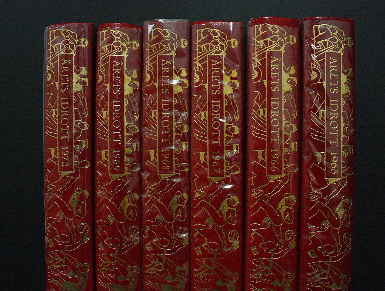 6 st 1965,-66-67-68-69-70 Strömbergs, Äkta guldtryck 23 karat, varje bok är plastat för att skydda guldet. stl varje bok: 28,5 x 22 cm.