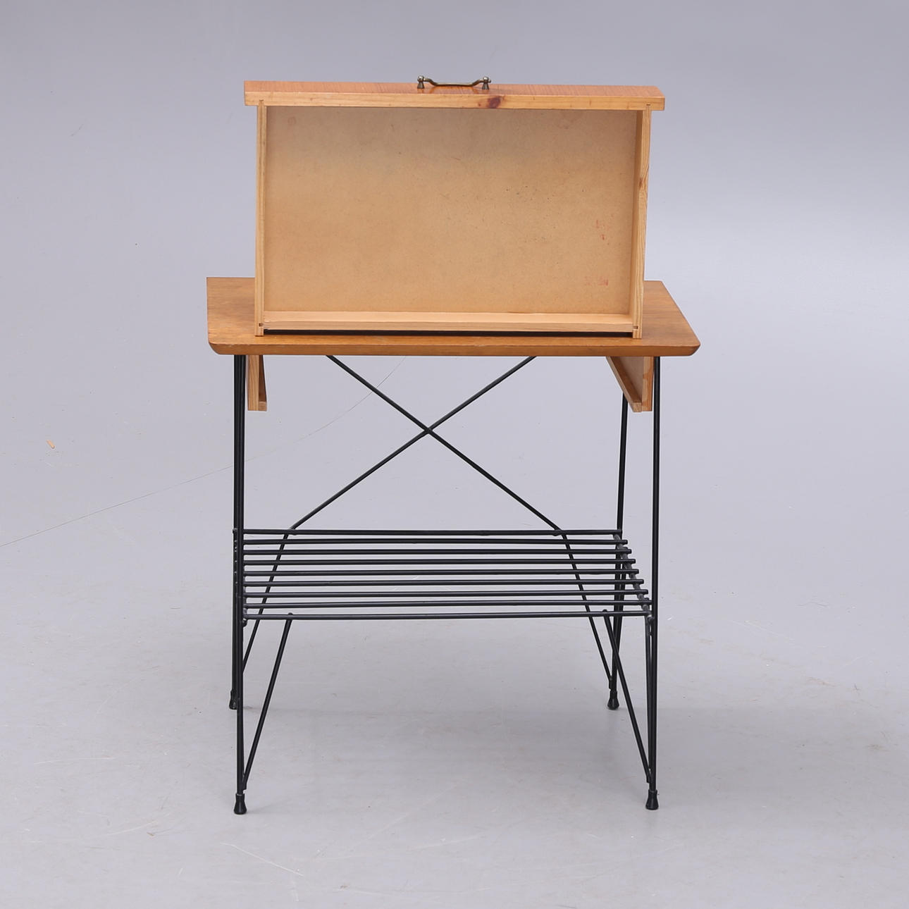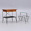 Sängbord höjd 53, bredd 52, djup 31 cm. Tidningskorg höjd 41 cm.