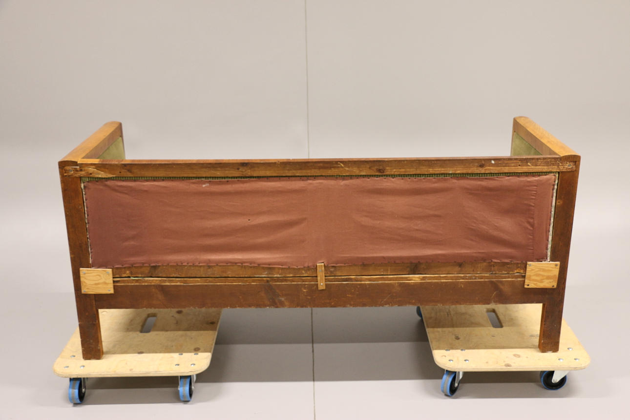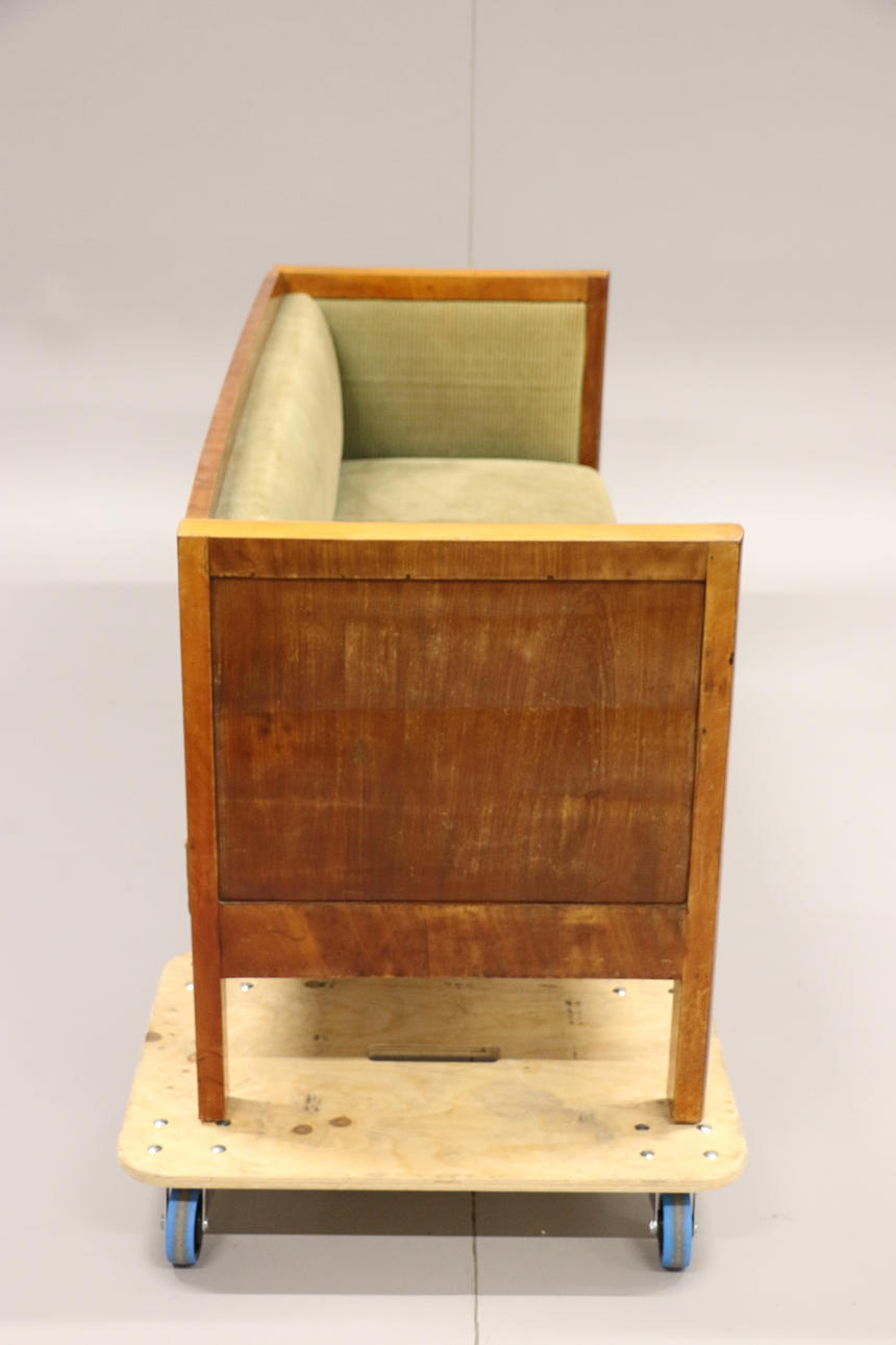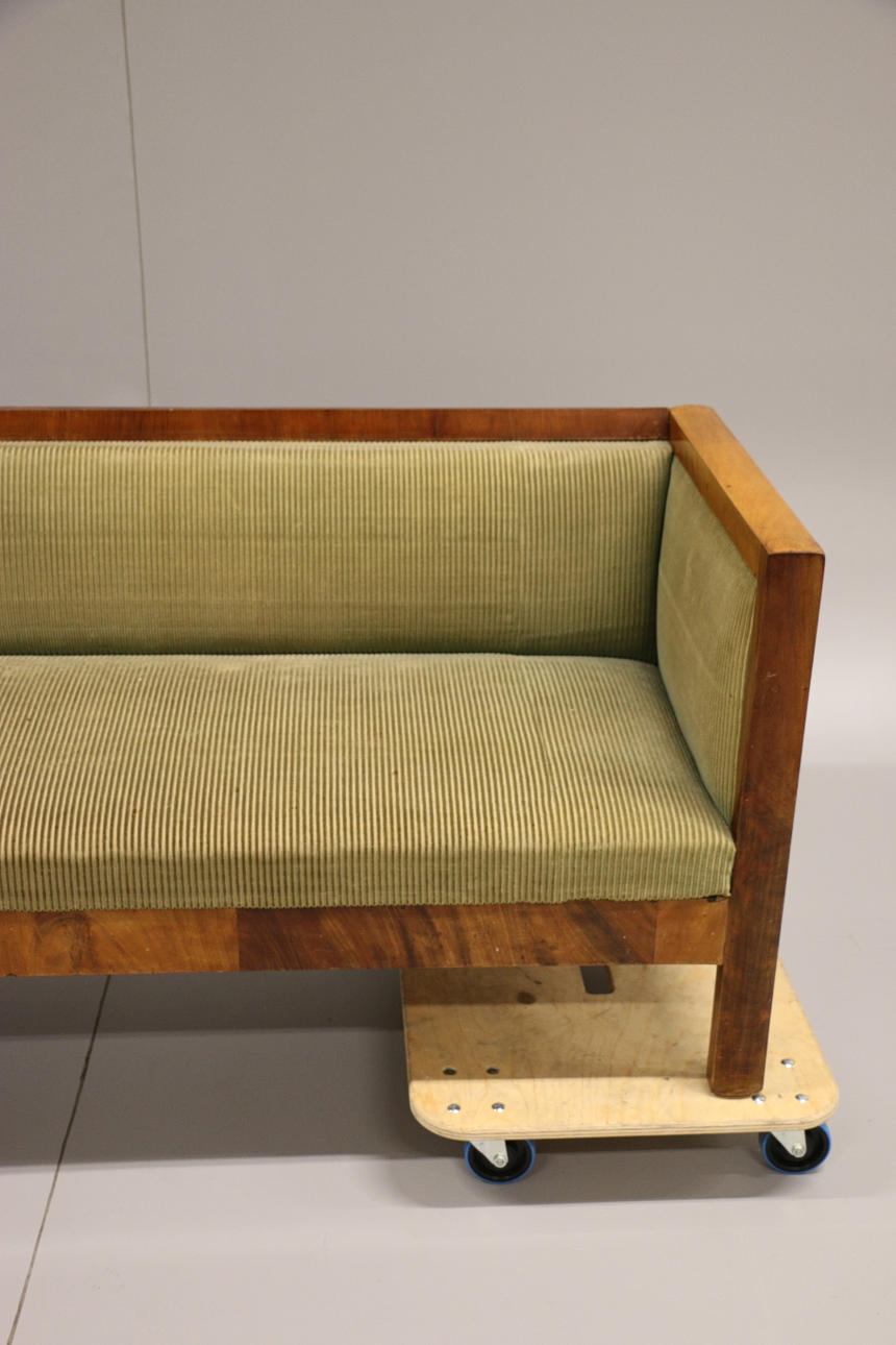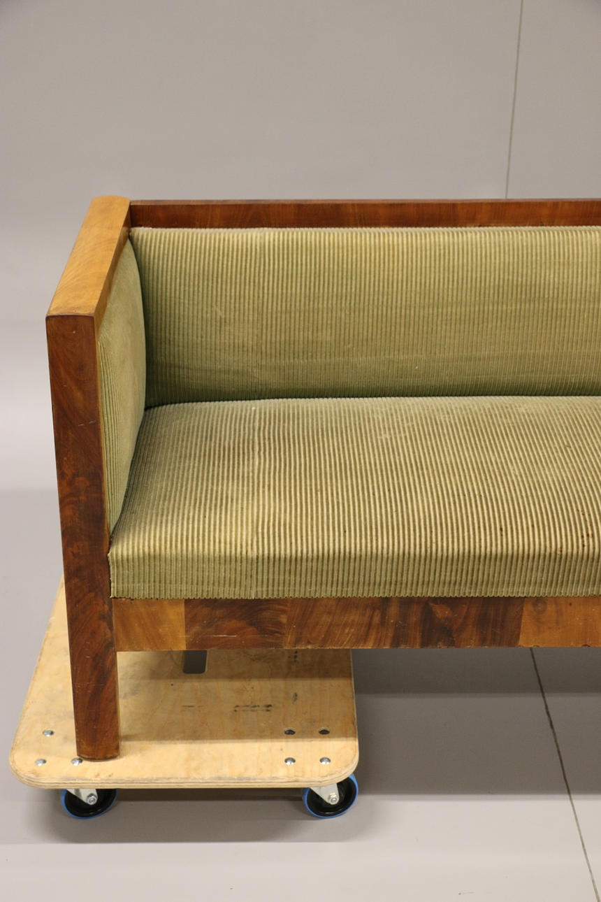 Spår av hundhår, klädsel med fläckar, stomme med sprickor, repor och märken.