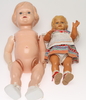 Stora dockan med smärre skador vid fästet till tråd. Den lilla utan anmärkning.