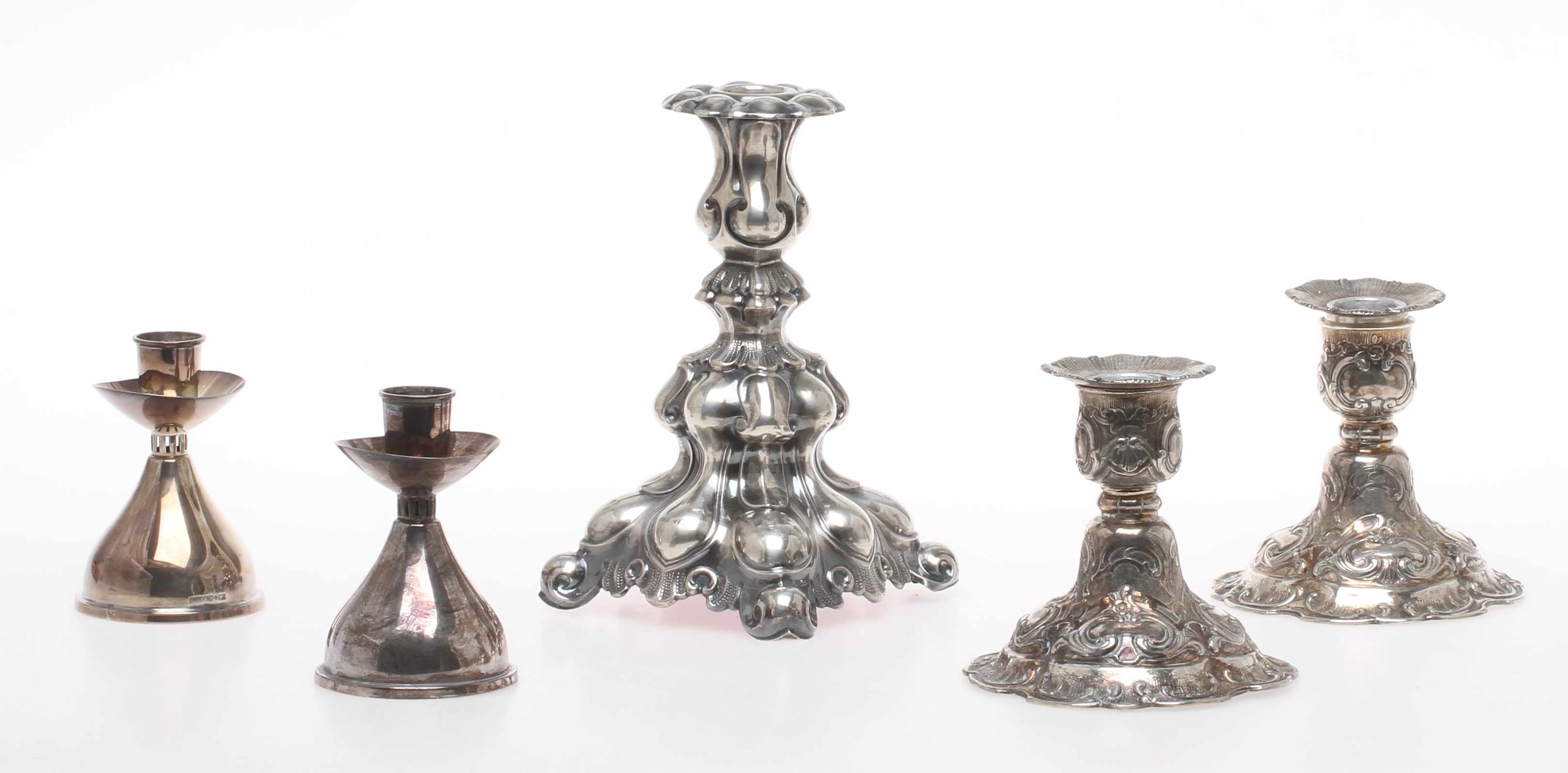 113759. LJUSSTAKAR, 5 st, silver, 1900-tal.