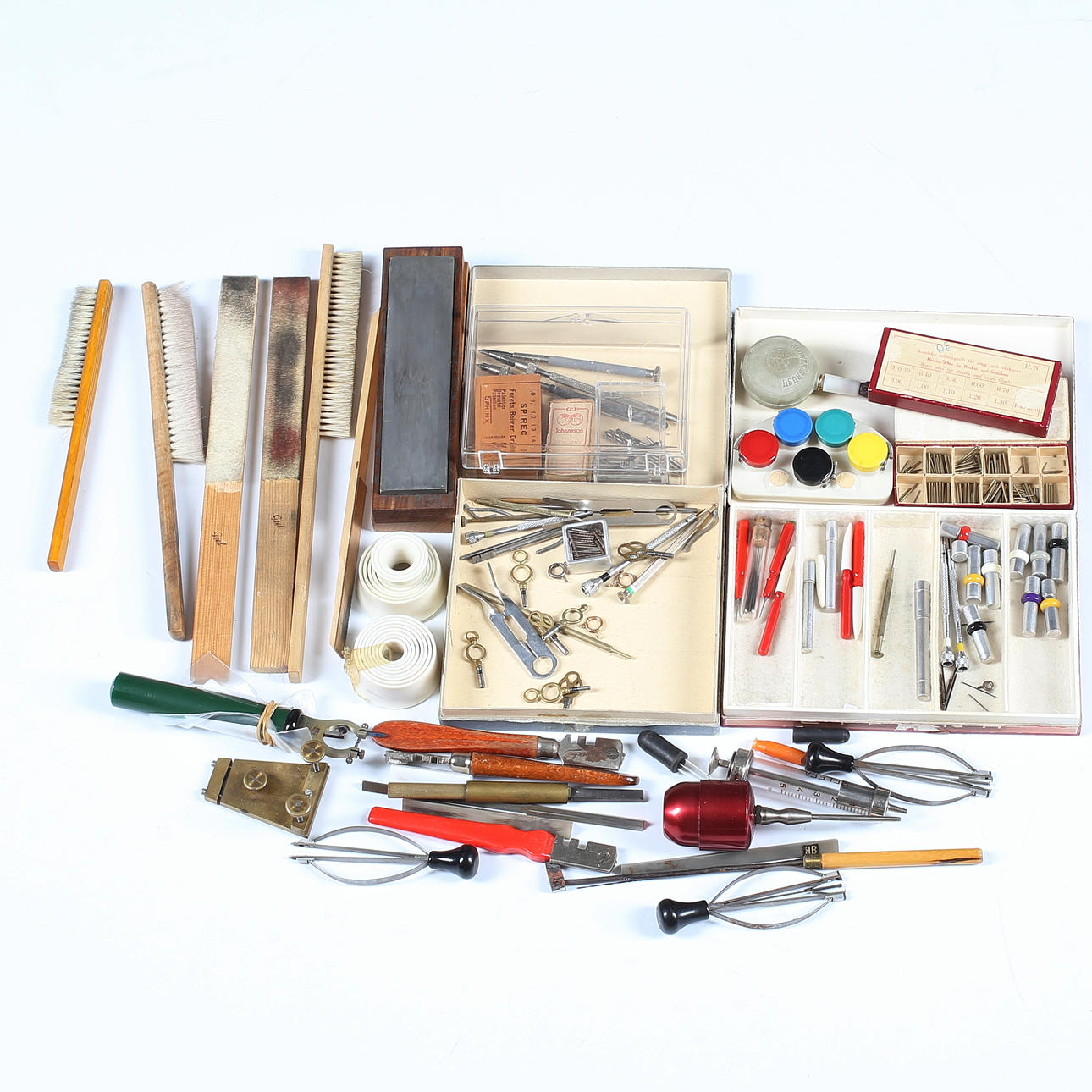 Bl.a mejslar, mässingsstift, borrhuvuden, nycklar, tänger, ifrån bl.a Bergeon m.m.