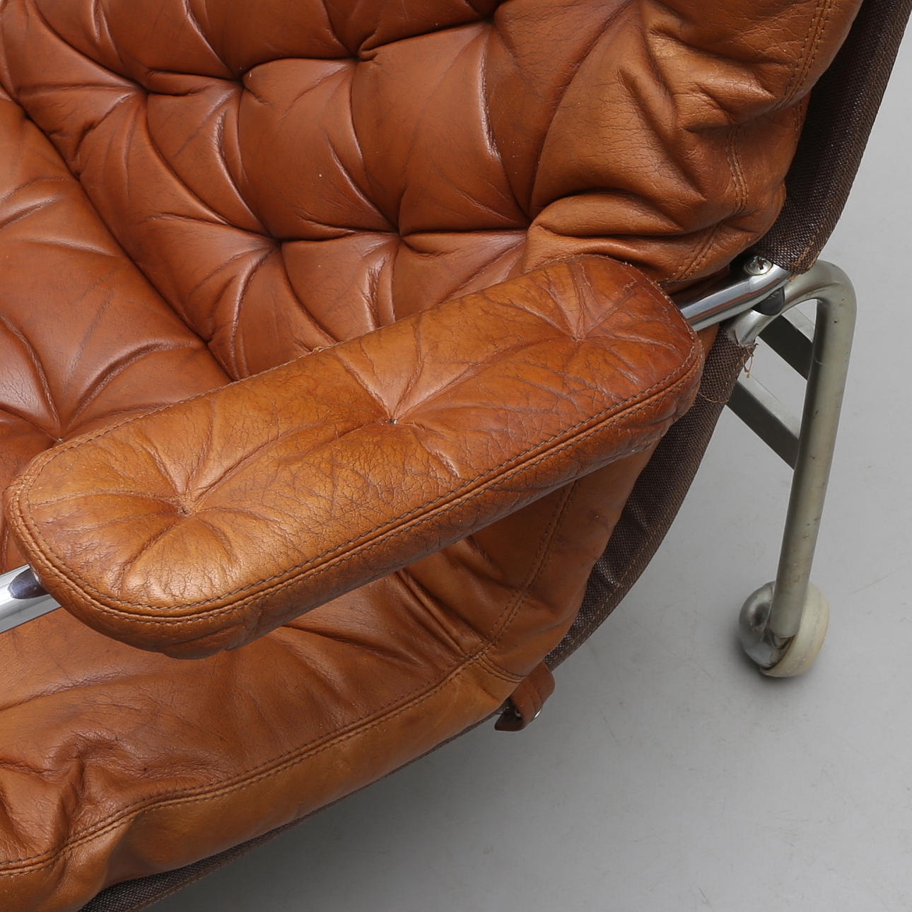 Stomme i kromad metall, brun läderklädsel, formgiven 1973.