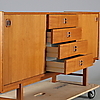 Med skjutdörrar, inredning i form av hyllplan samt 4 st lådor.