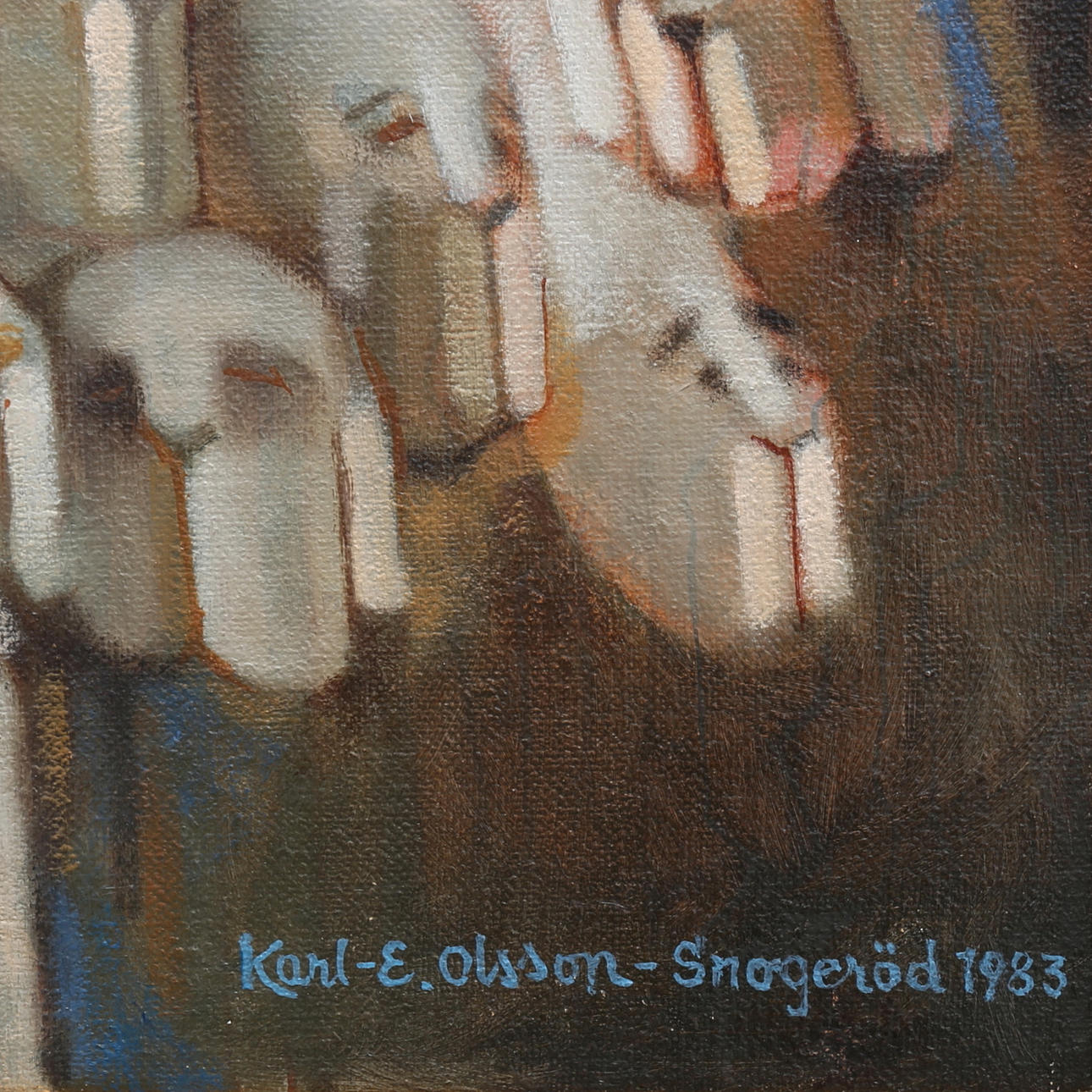 Signerad och daterad Snogeröd 1983, olja på duk 50x50 cm.