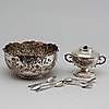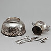 skål, sockerskål med lock, 6 st kaffeskedar.