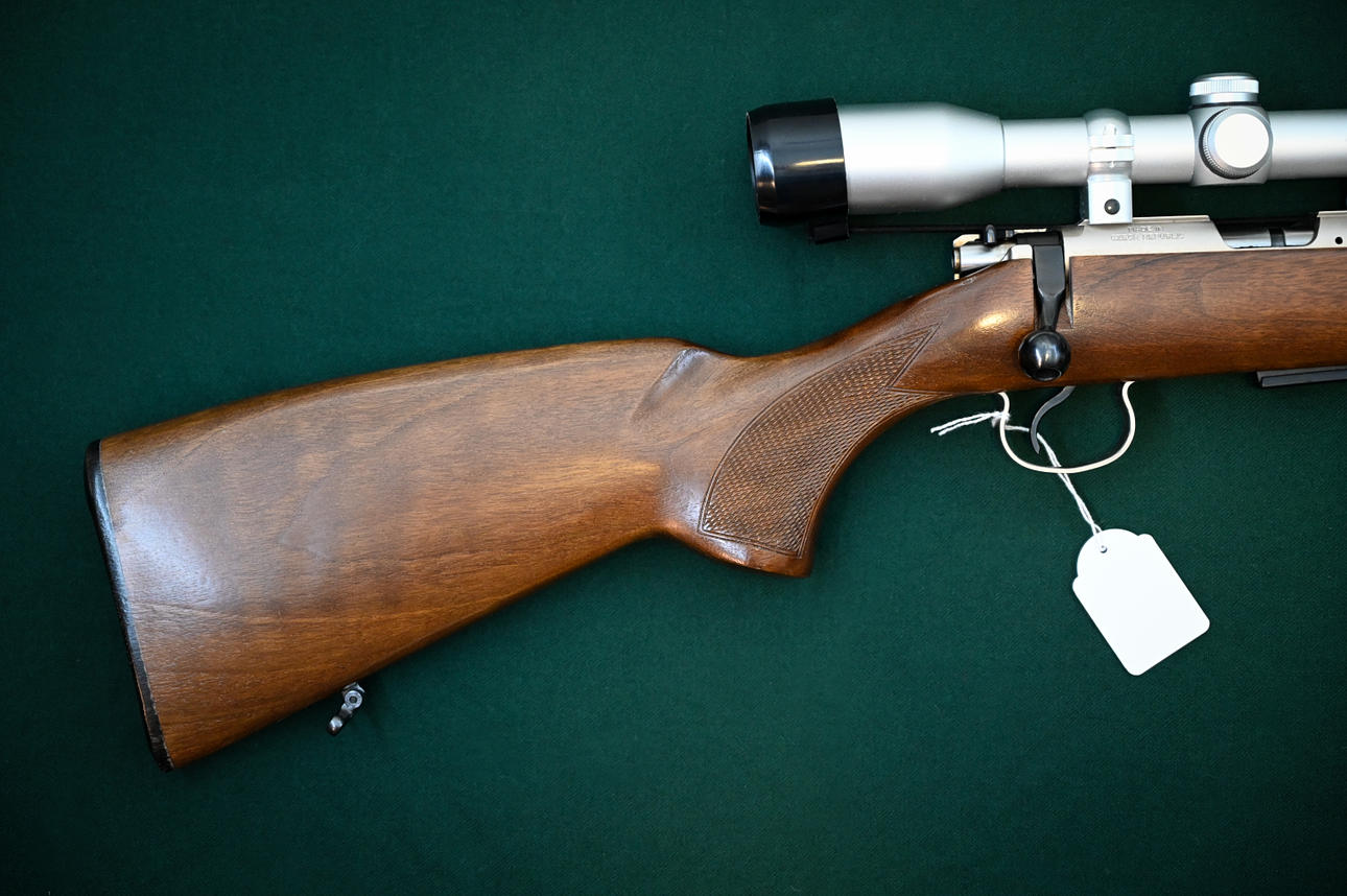 Tillverkningsnummer: 755105. Piplängd 63cm. Vapnet helt i rostfritt. Löstagbart magasin. Kikarsikte Shirstone 4x32 med paralax monterat. Kolv med pistolgrepp.