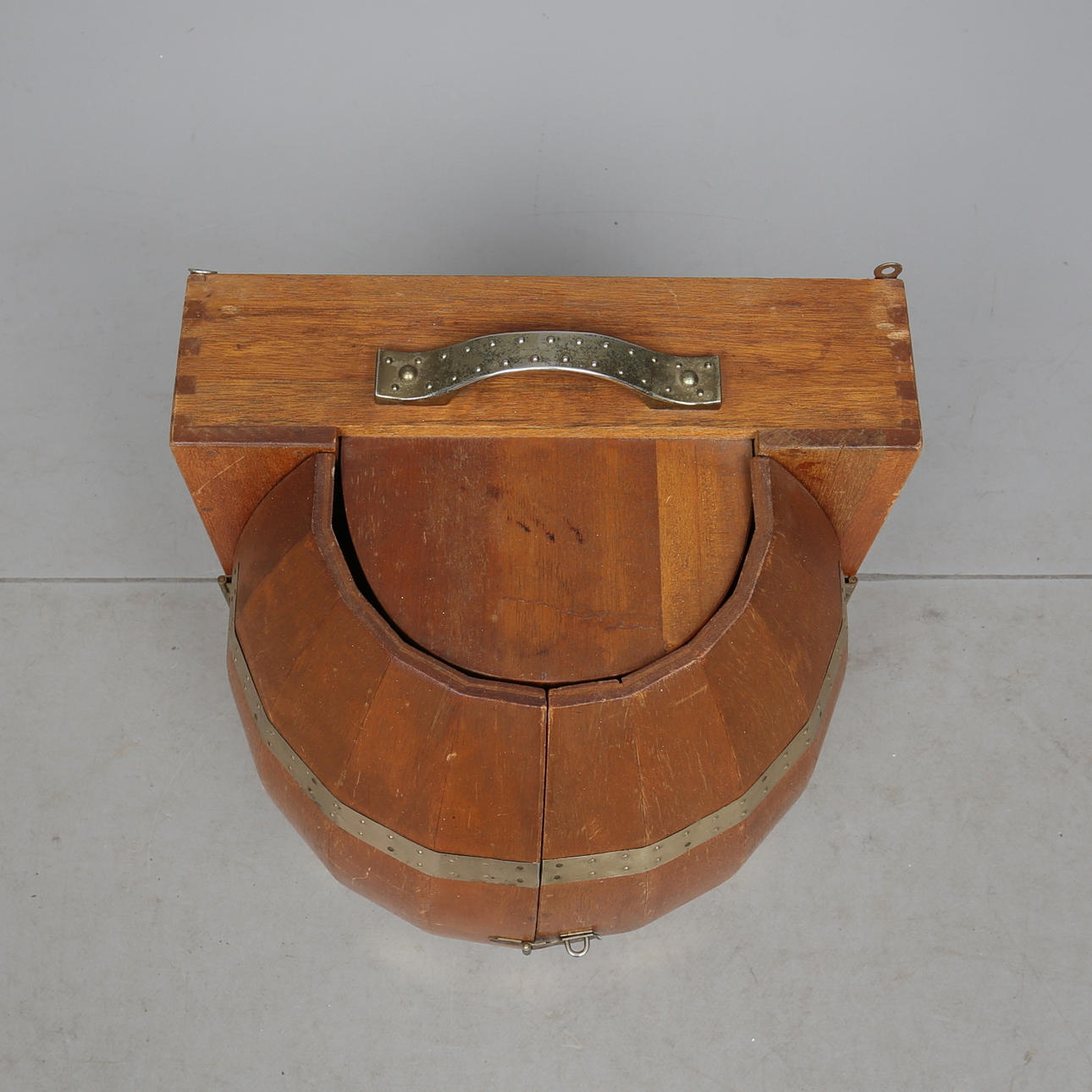 För montering på vägg. Beslag i mässing. Höjd ca 48 cm.