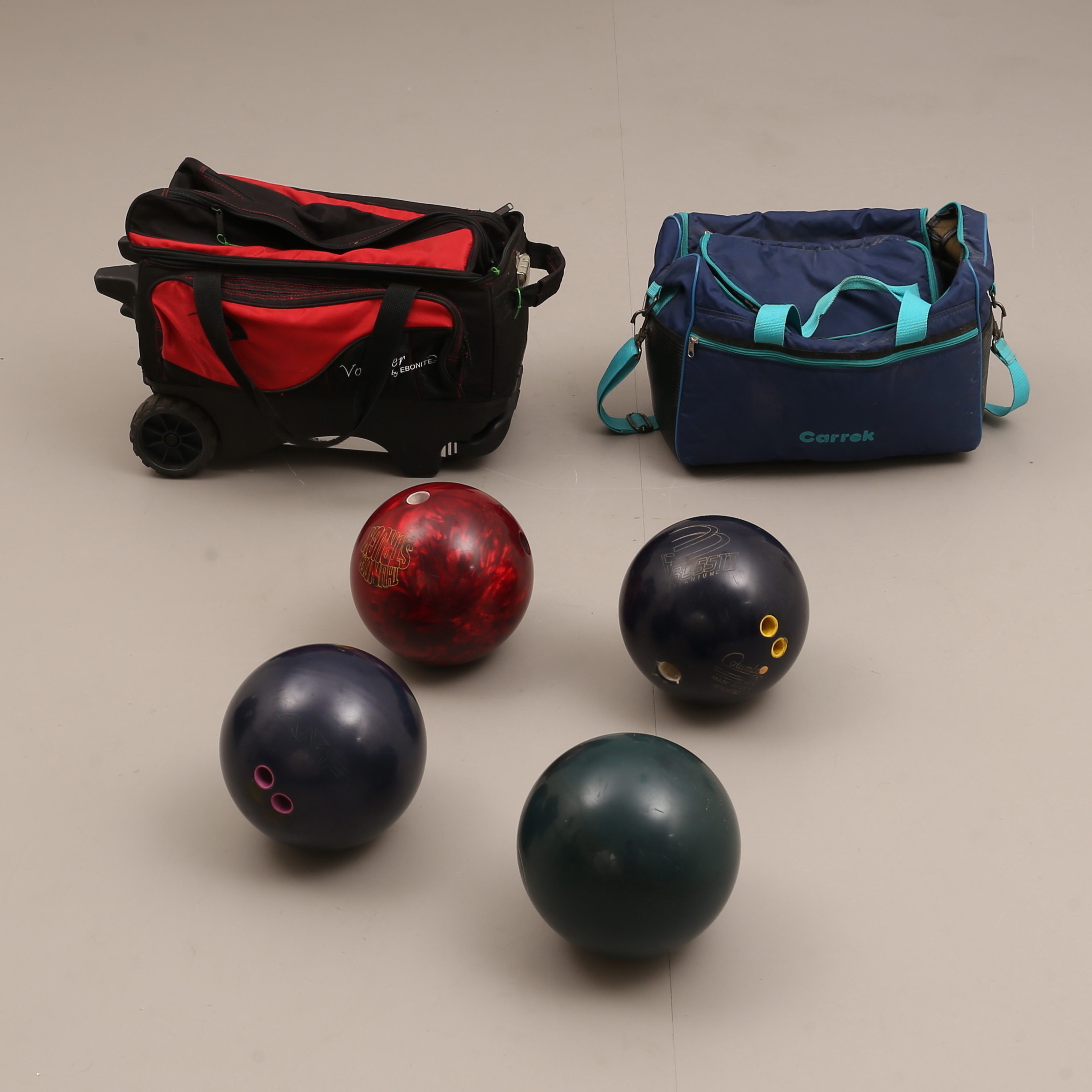 1150915. BOWLINGKLOT, 4 stycken, med väskor.
