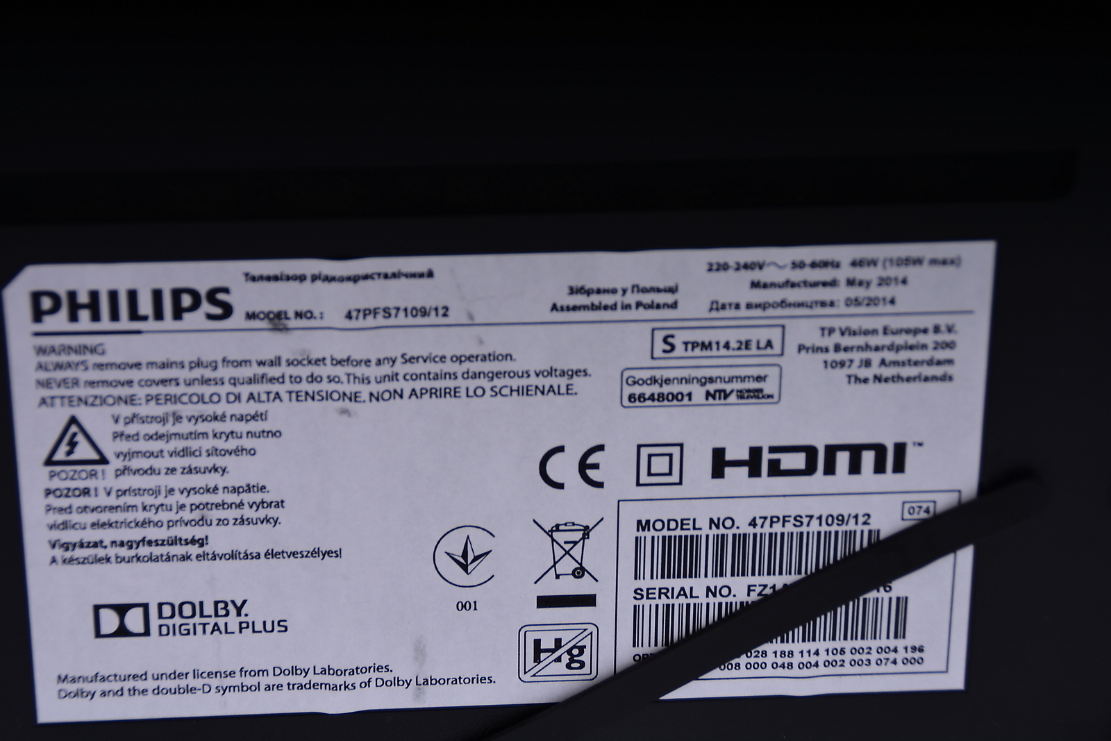 1150992. SMART-TV, Philips, 47 tum.