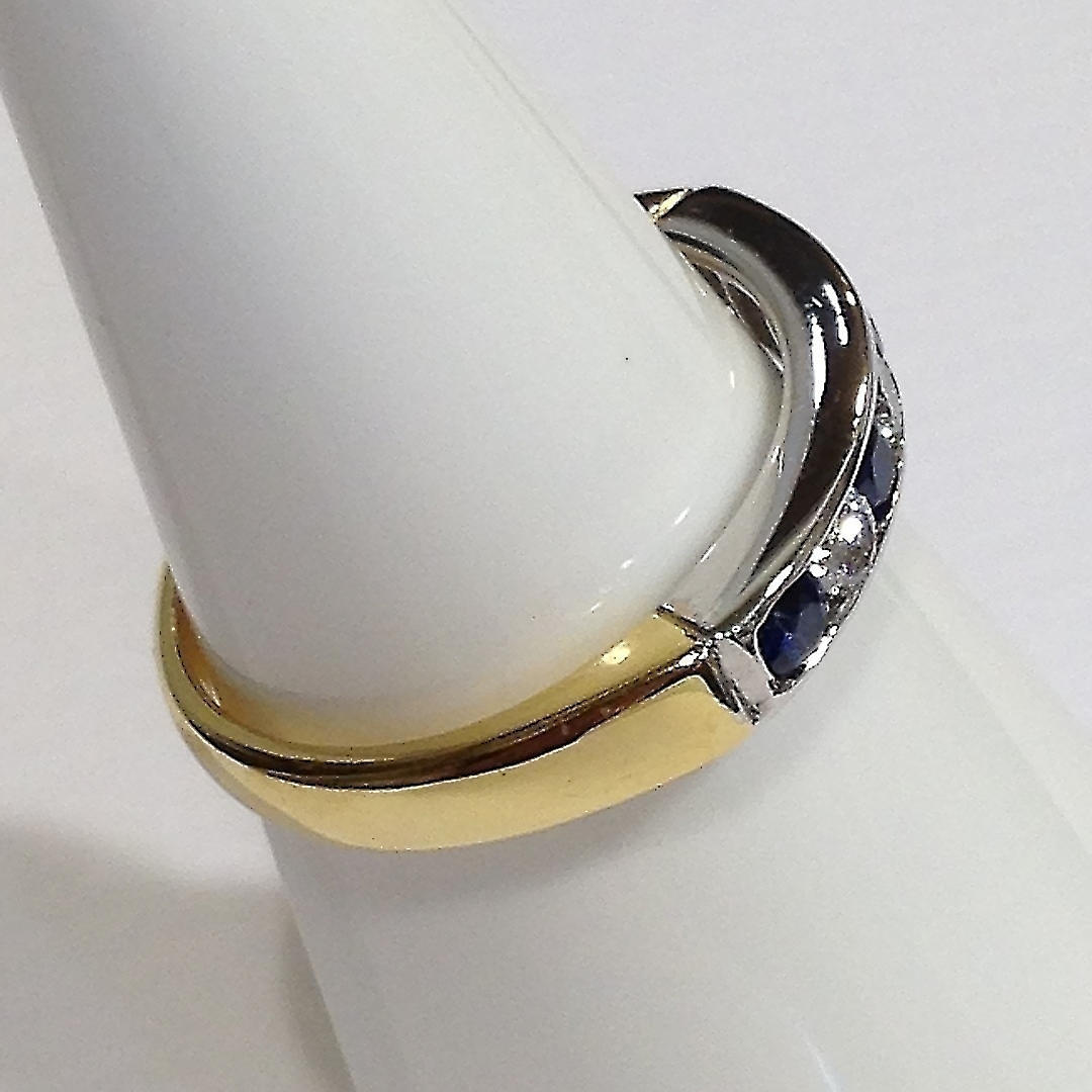RING med kanal-set safir och diamanter i 18K gult och vitt guld (stämplat).