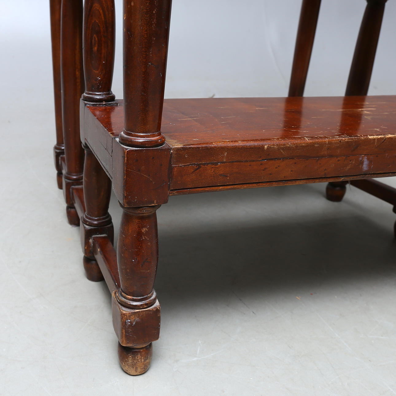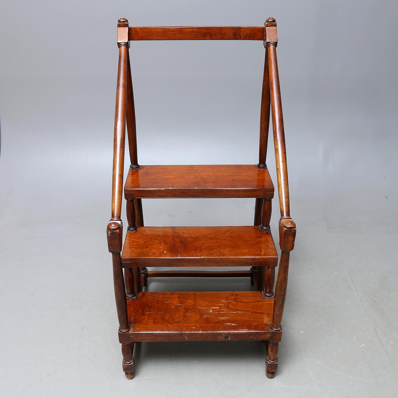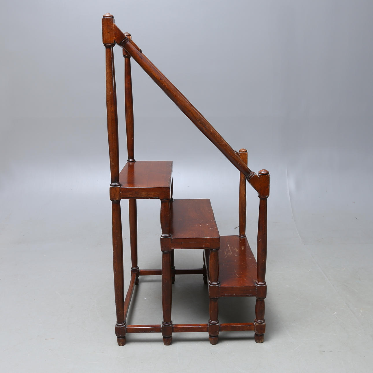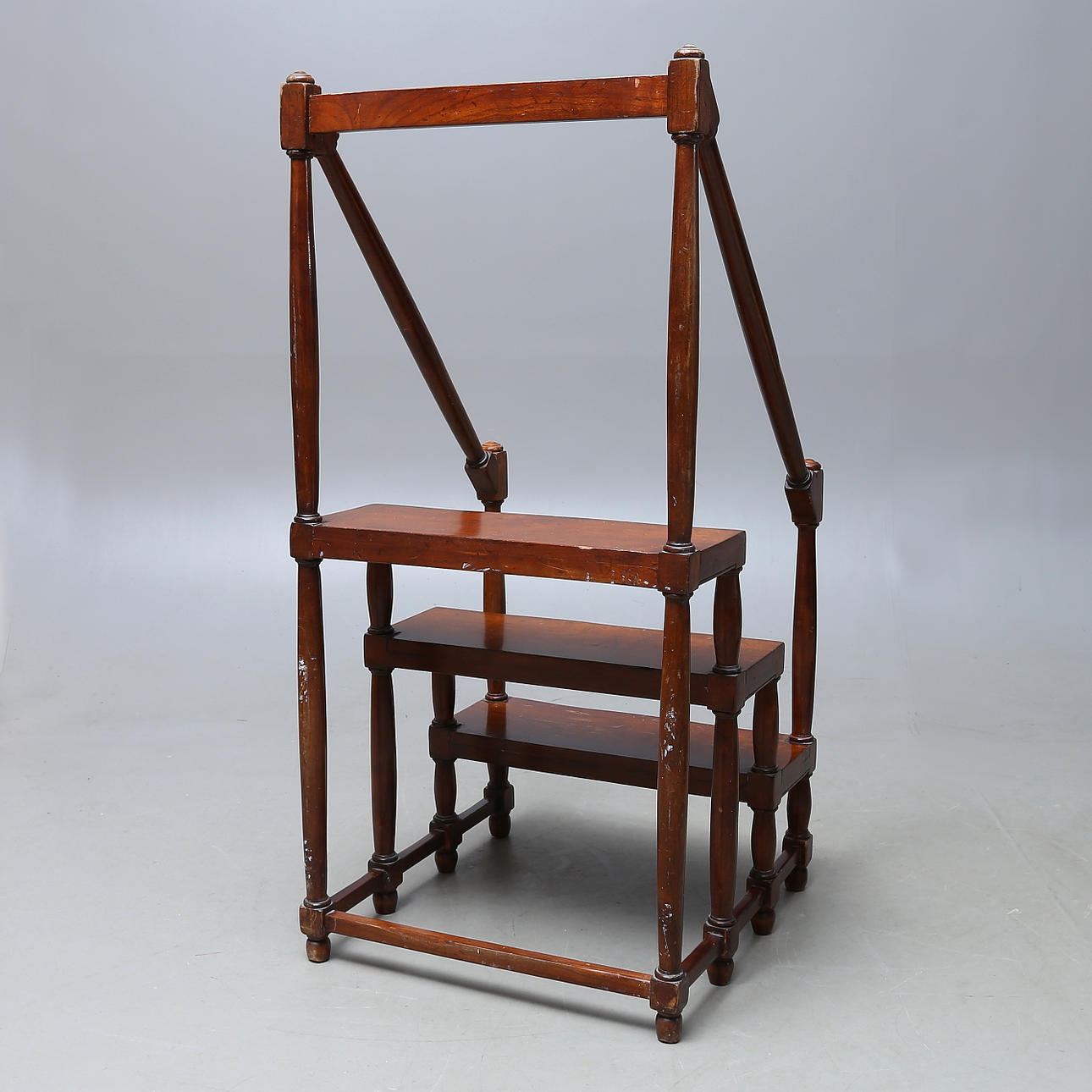 Högsta trappsteget höjd ca 61 cm. Total höjd ca 119 cm. Längd 56,5 cm. Bredd 56 cm.