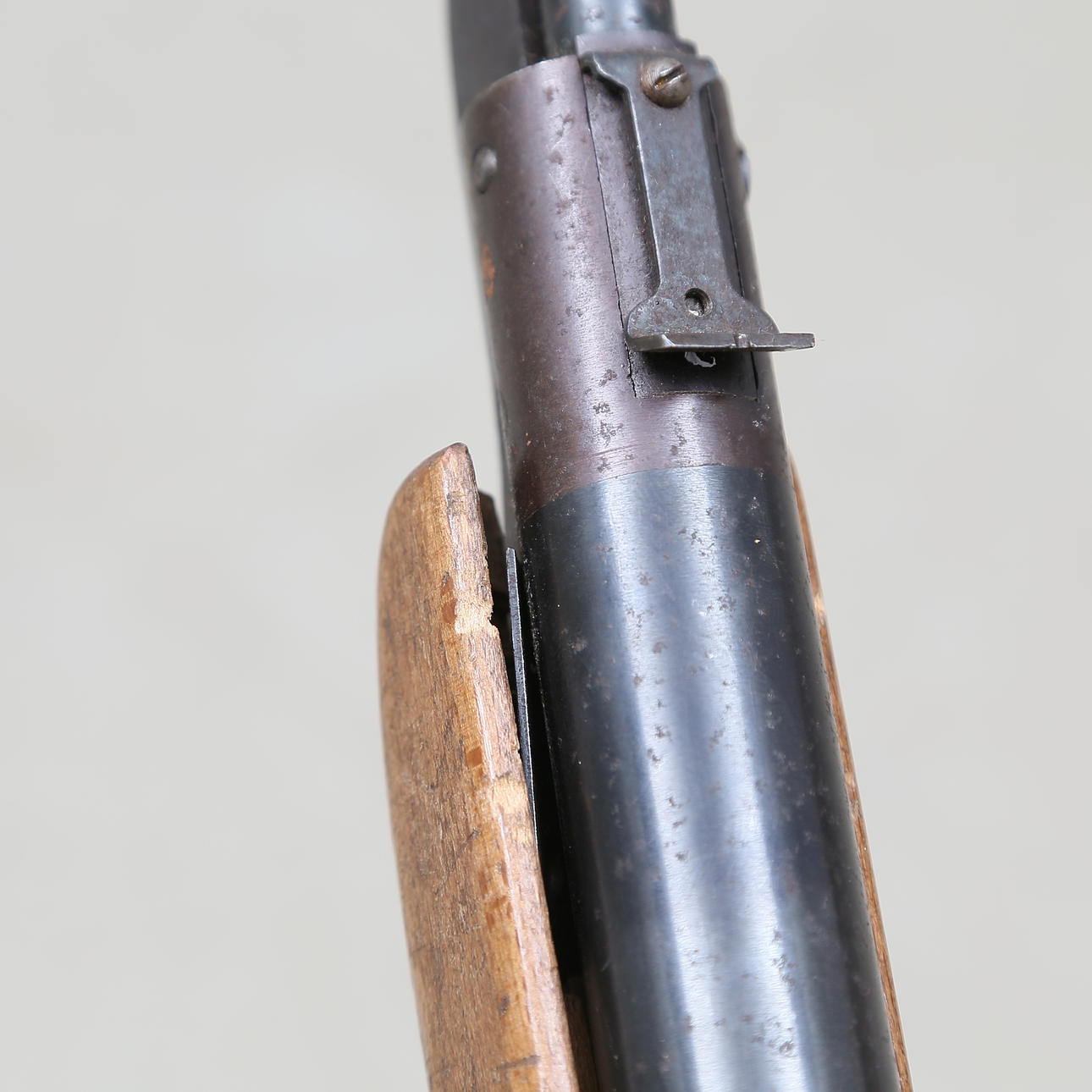Ålders- samt Bruksslitage, fungerar vid testning, lös vid kolvfästet pipan, auktioneras där av ut som renoveringsobjekt.