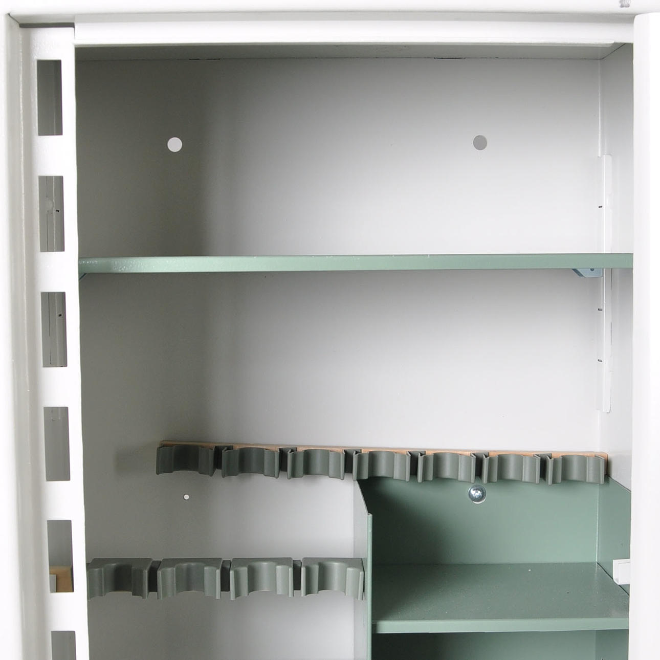 VAPENSKÅP FÖR 8-16 VAPEN MED NYCKELLÅS , PIPSTÖD, HYLLINSATS 3 HYLLOR, 3 DÖRRBOXAR, KOLVSTÖDSMATTA, 151KG.
