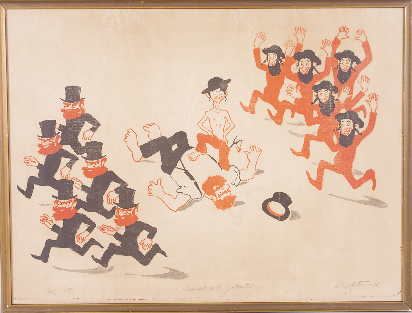 115929. OKÄND KONSTNÄR. "David och Goliath", litografi.