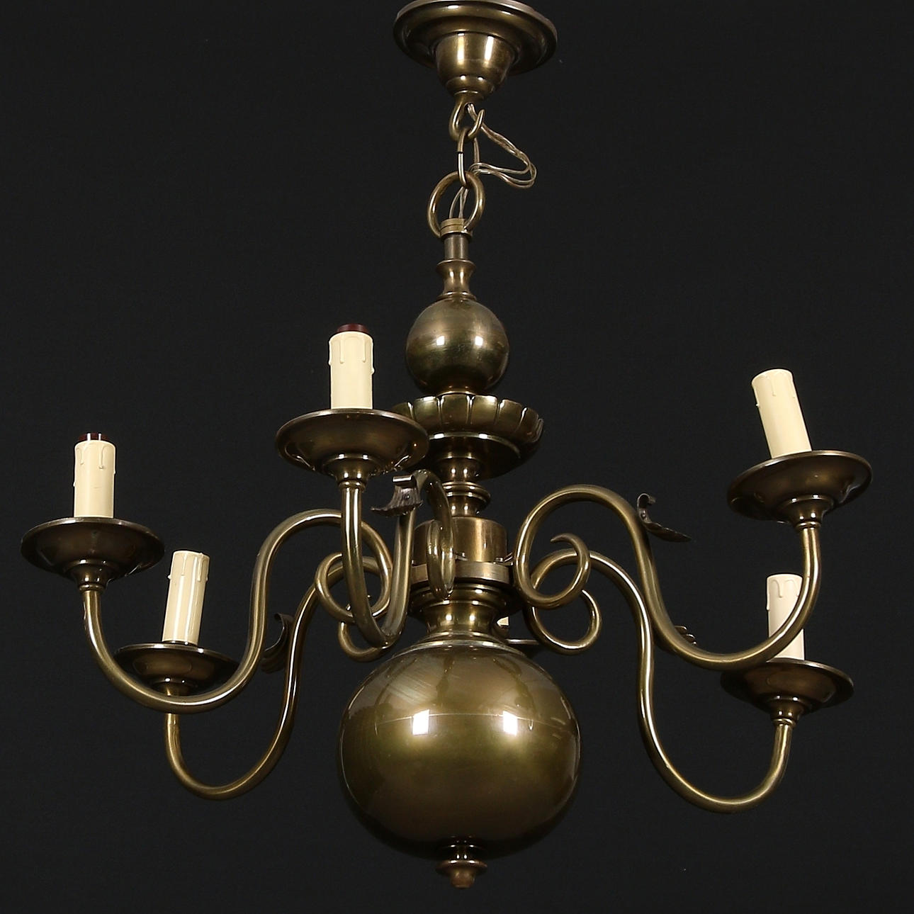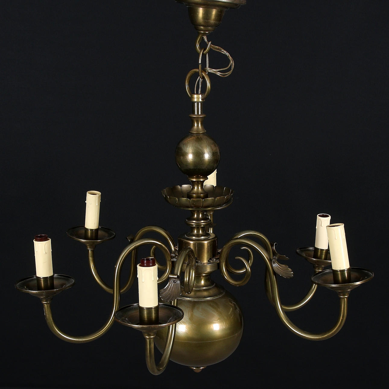 Sex ljusarmar. Diameter 66 cm, höjd 56 cm.