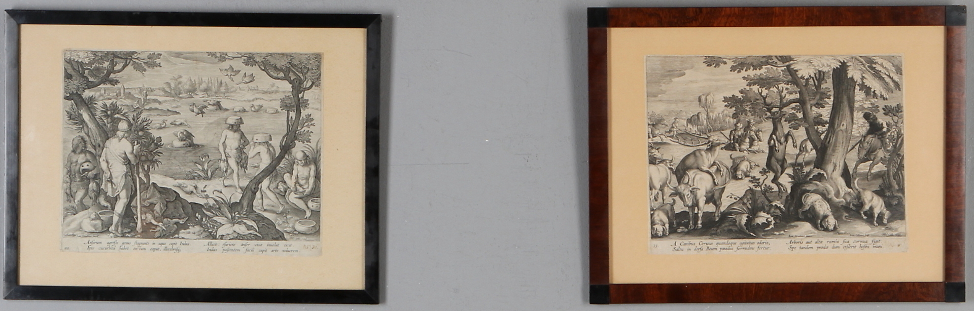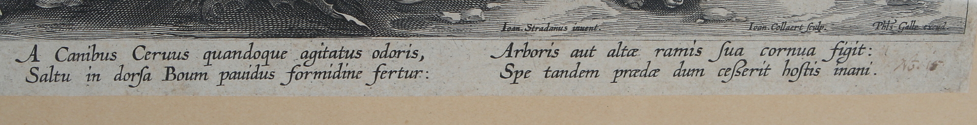 116001. JAN VAN DER STRAET. EFTER. Kopparstick, 2 st, jaktmotiv.