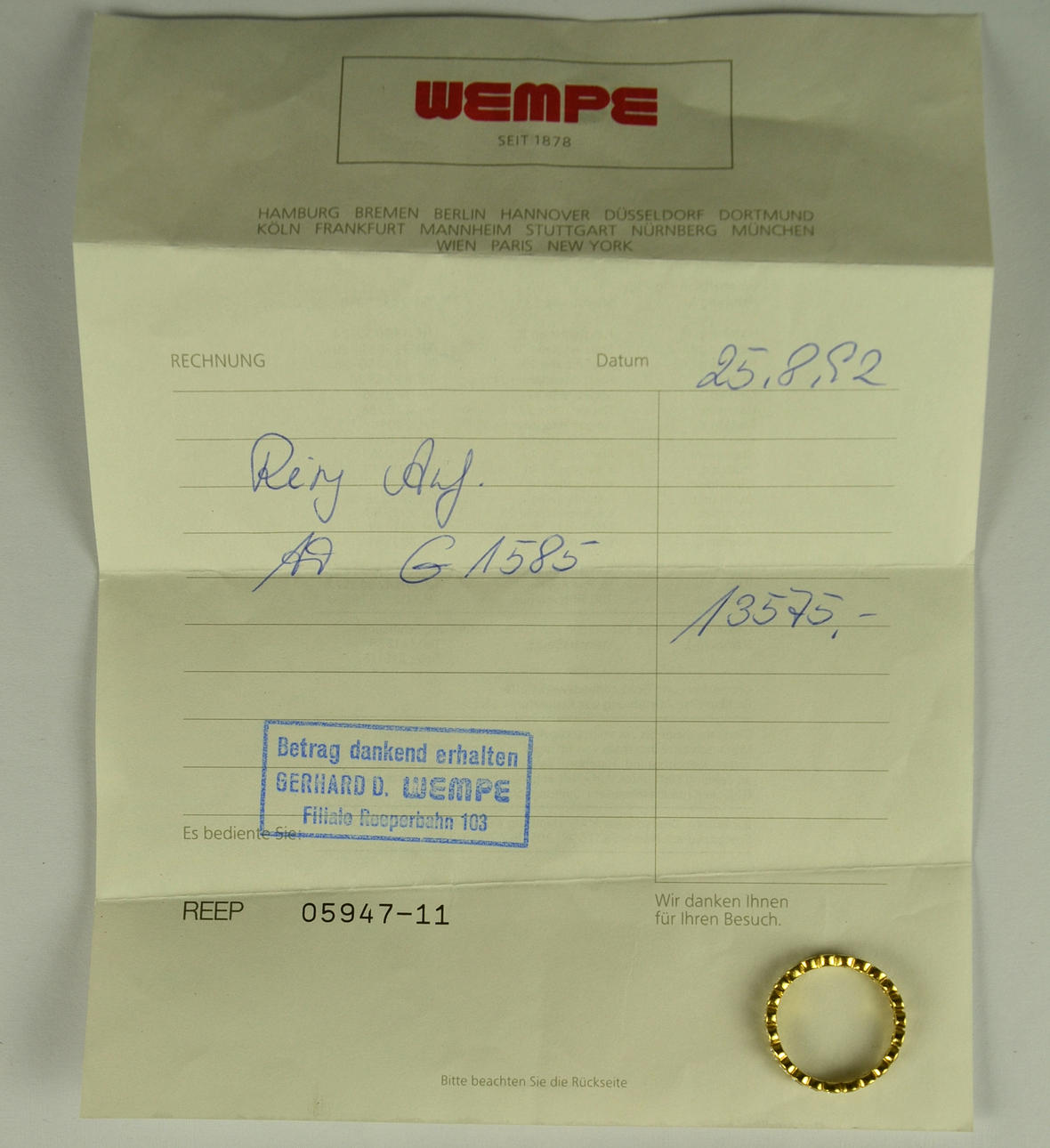 1160204. WEMPE RING 750 GULD.