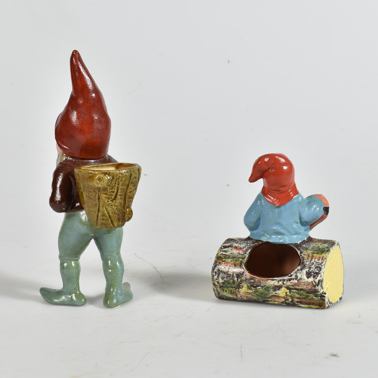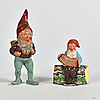 tomte, 2 st äldre med kruka.