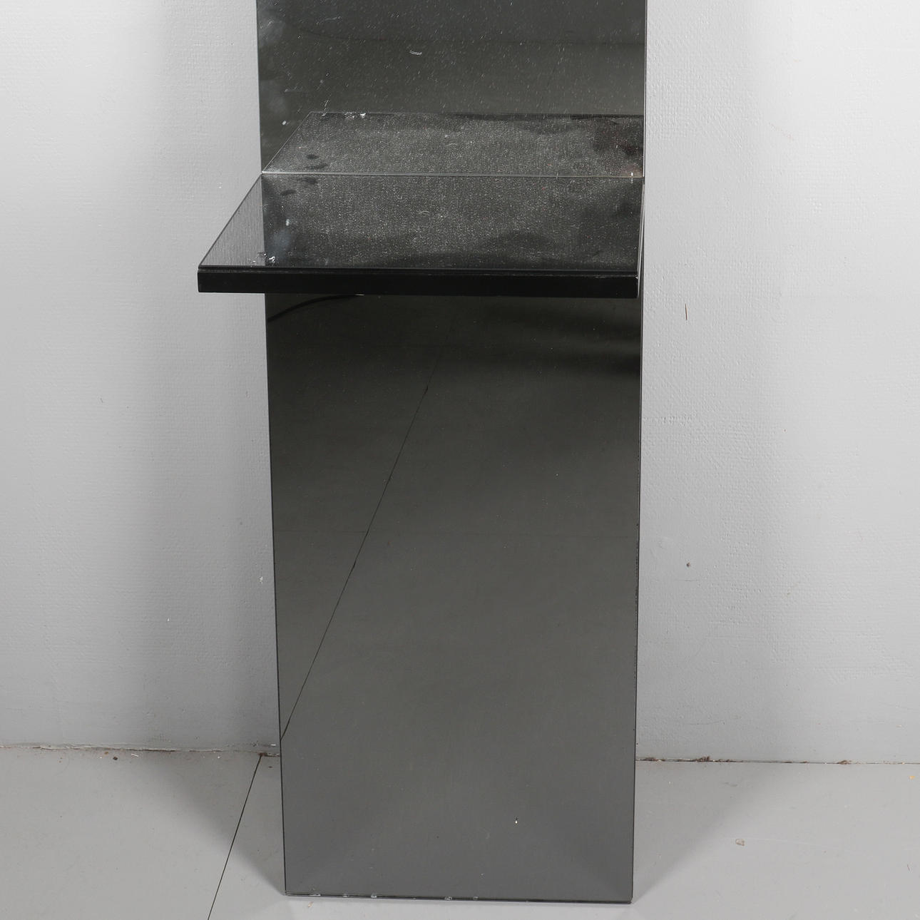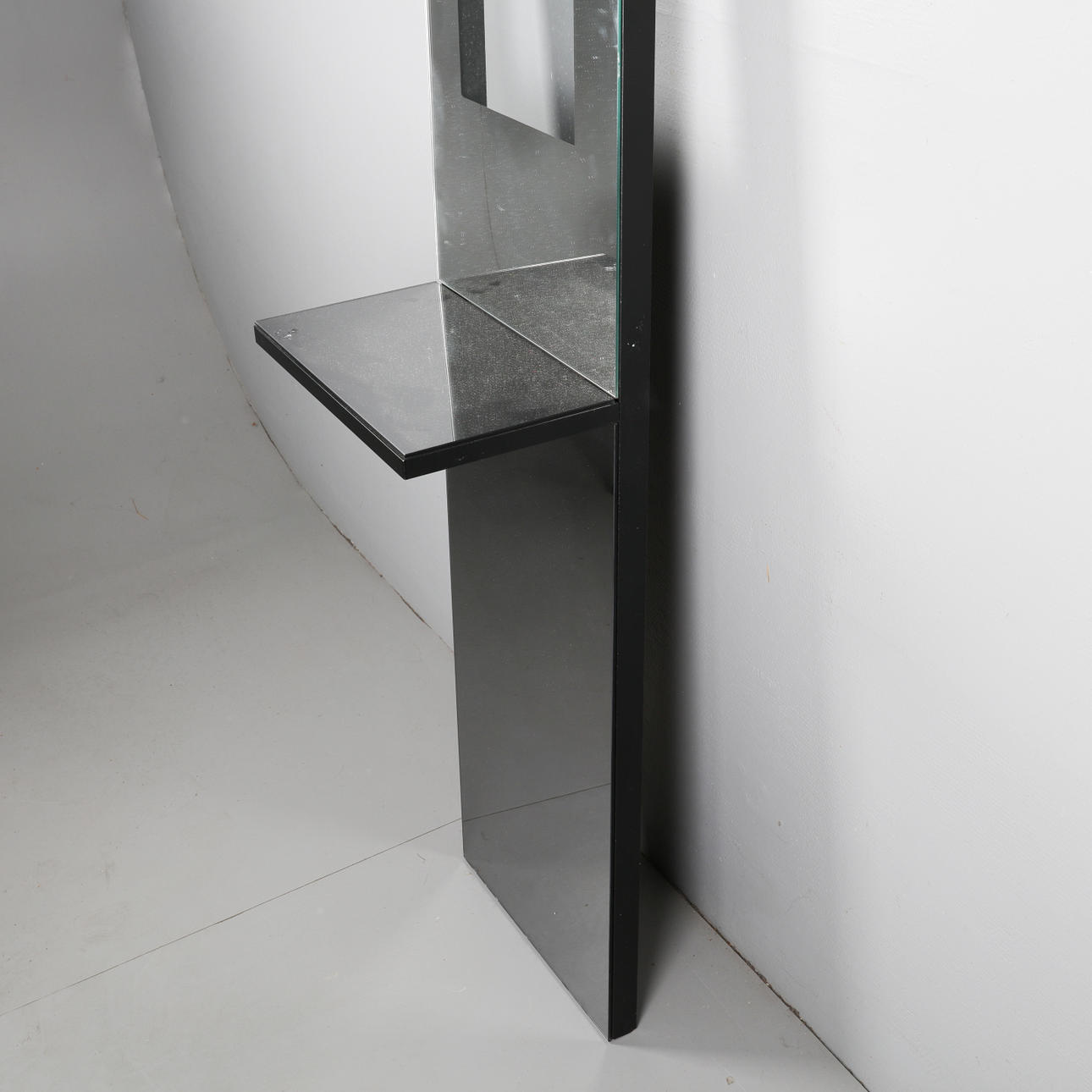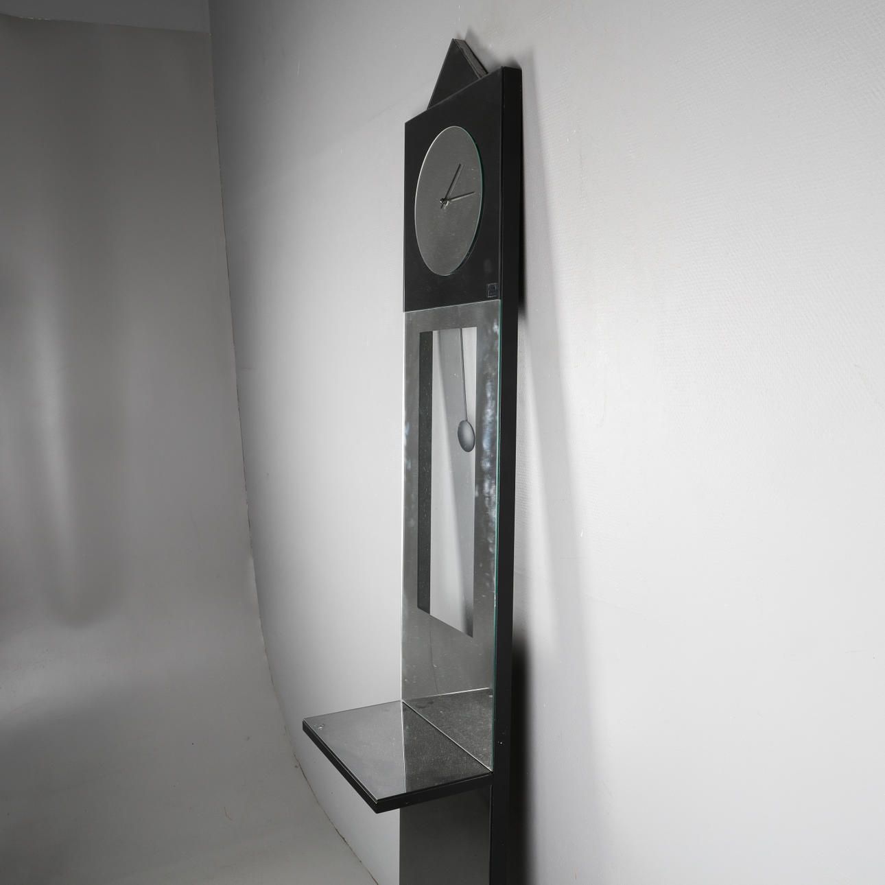 Väggspegel med hylla och klocka i spegelglas