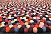 Rund filtbollsmatta i kulörta färger. Diameter 141 cm.