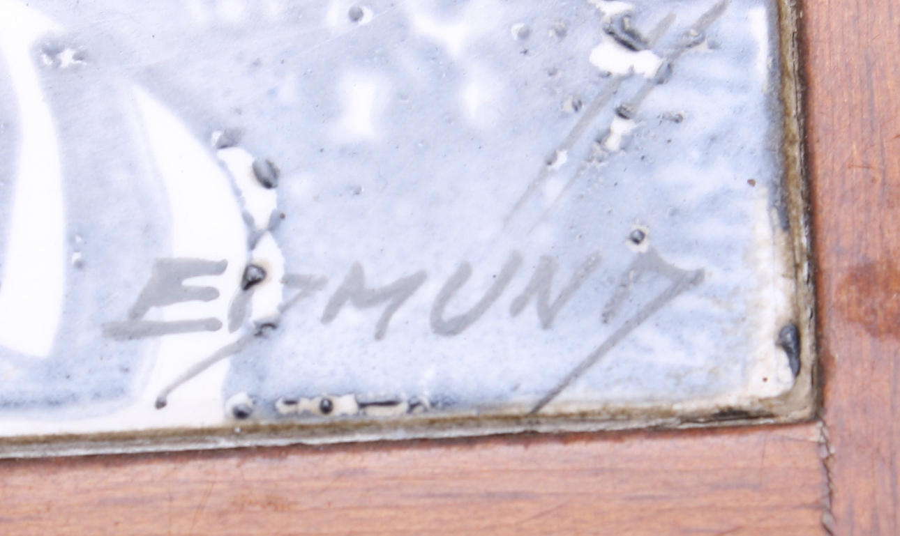 Kakelplattor, sign EJM, höjd 55 cm, 54x137 cm.