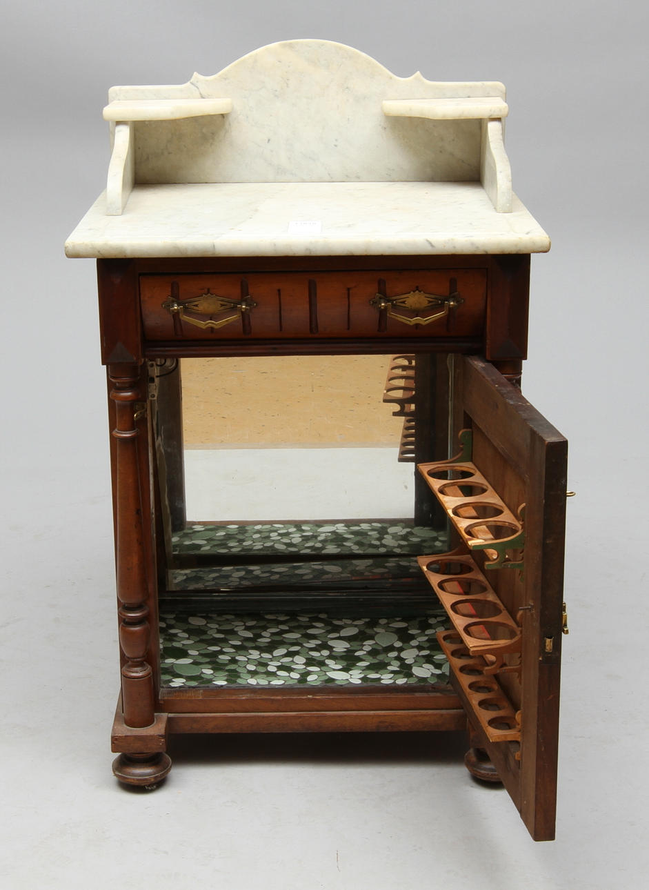 Fanérad med bla valnöt. Längd 60, bredd 50, höjd 97 cm.