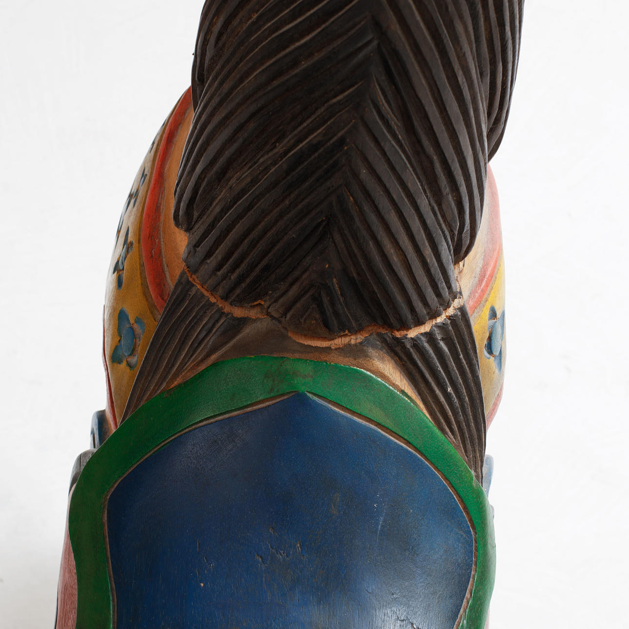 Mindre färgbortfall samt sprickor.